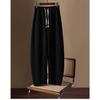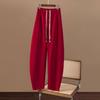 Женские широкие брюки из бархата с высокой талией в корейском стиле 2024 года — коллекция осень/зима с завязками на шнурке и свободным кроем.
