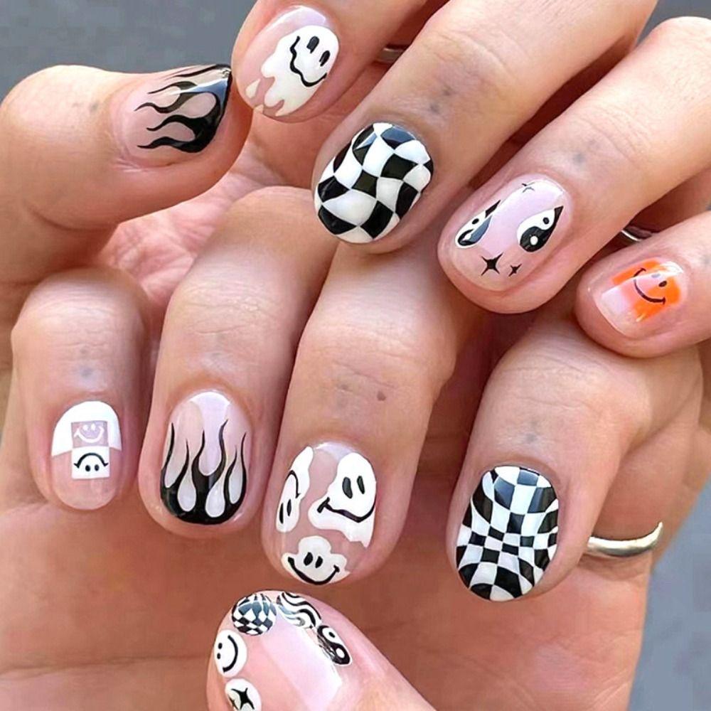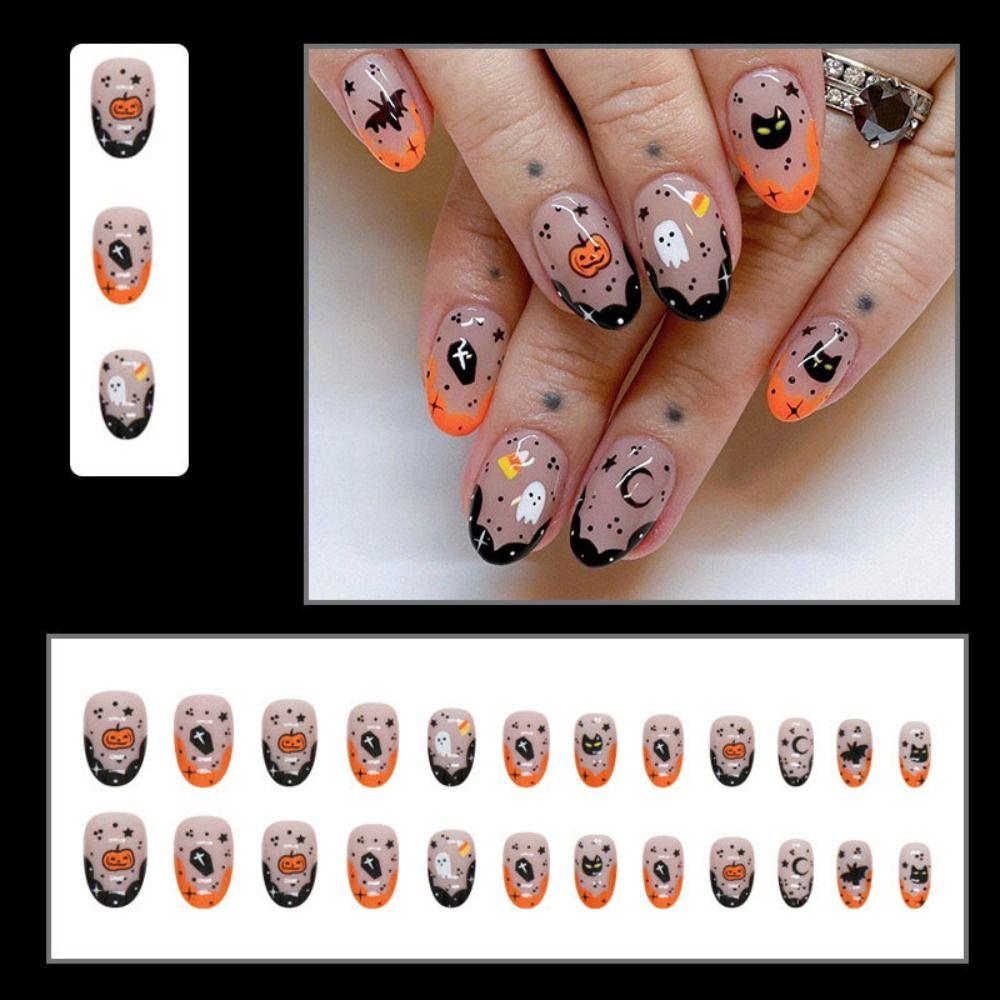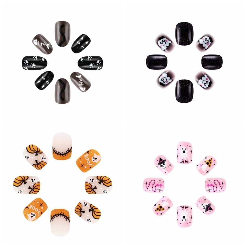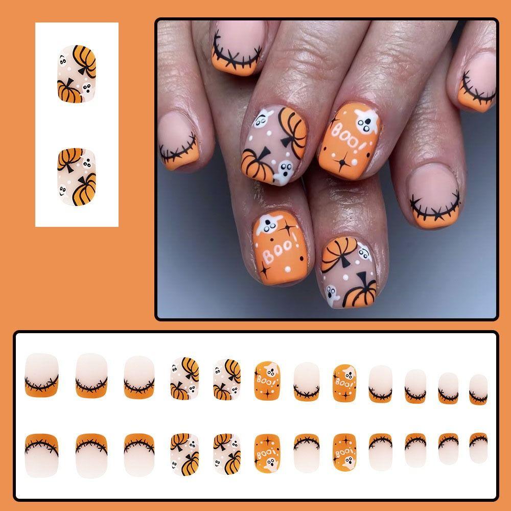 Различные стили тыквы призрак накладные ногти праздничная атмосфера ручная работа одежда для девочек