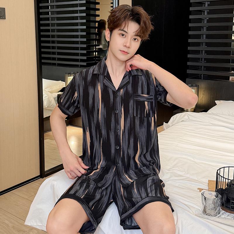 2025 летняя тонкая шелковая пижама для мужчин, удобная, с коротким рукавом, большого размера, домашняя одежда, пижамы, костюм для подростков, для отдыха на природе, можно носить на улице