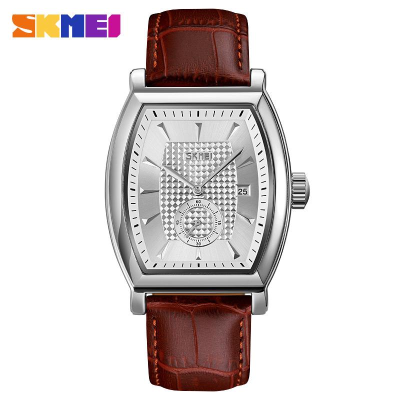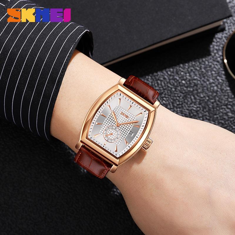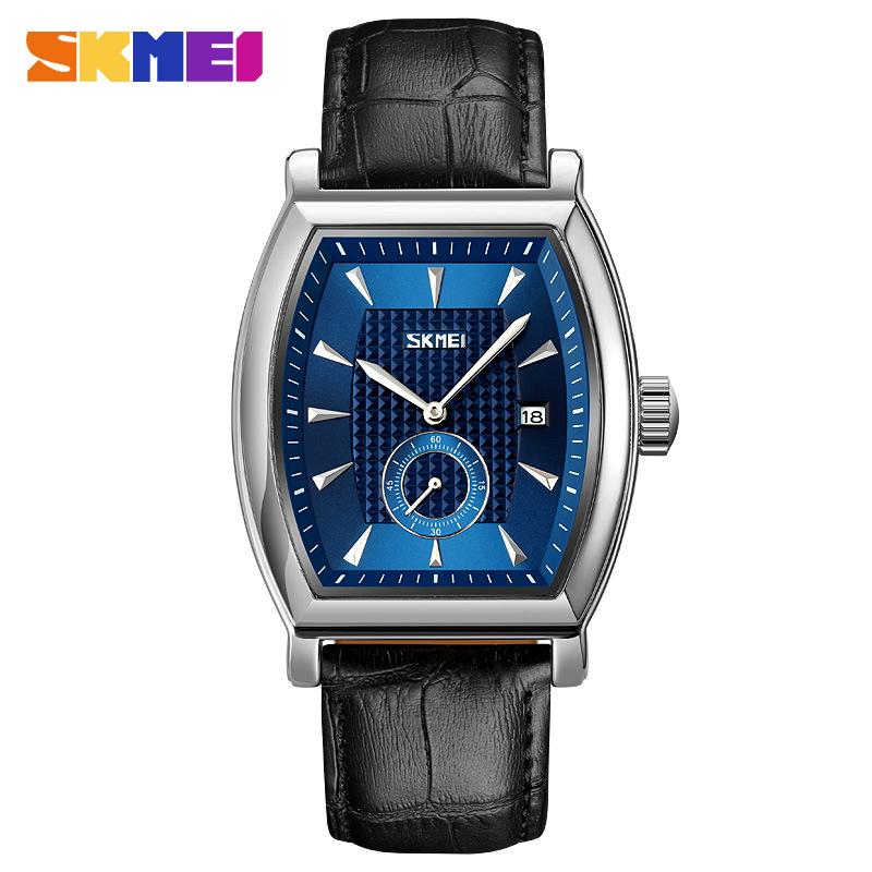 Skmei модные мужские кварцевые часы в форме бочки для вина, календарь, кожаный ремешок, деловые ветрозащитные часы, подлинные