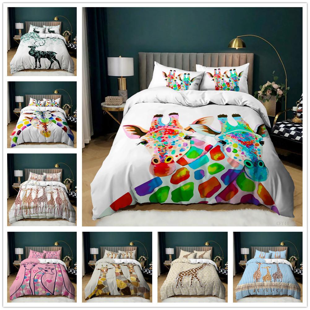 Жираф Лось 3D Цифровая Печать Набор Лоскутного Одеяла Кровать Набор из Трех Предметов