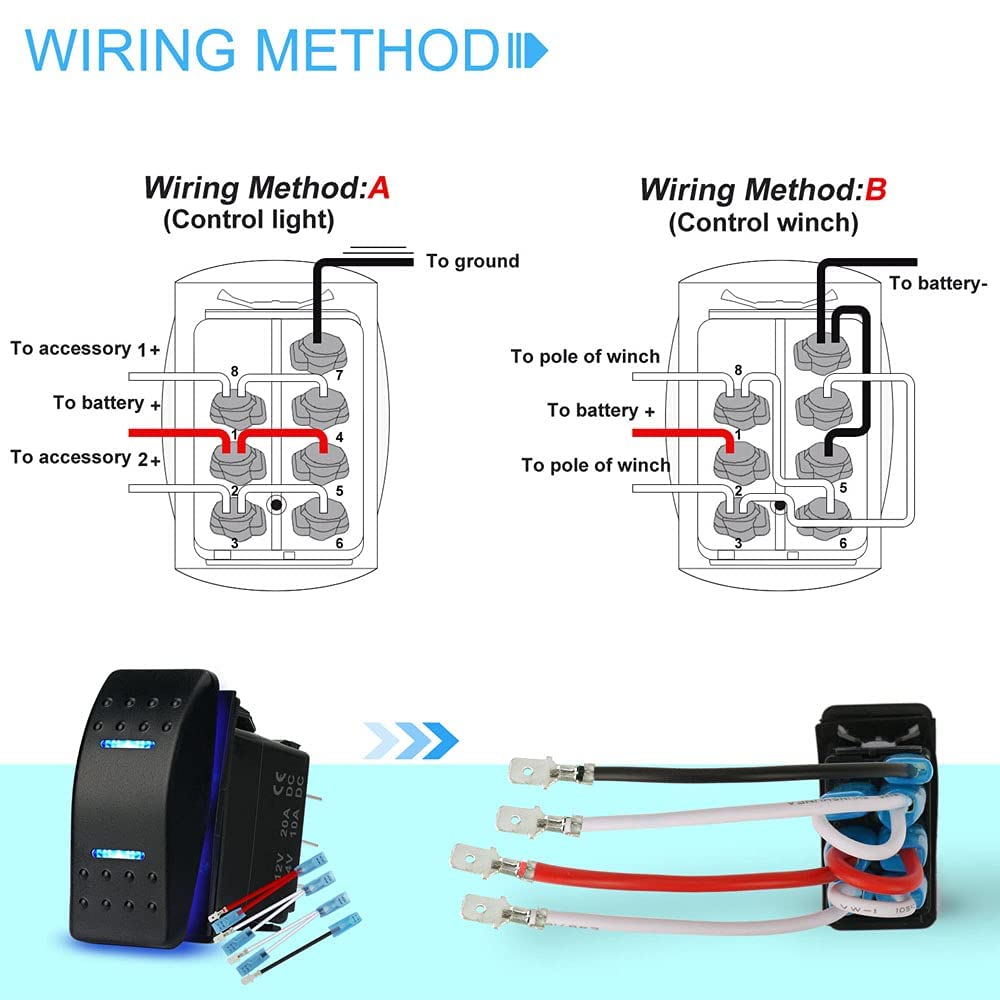 【Совместимый】7-контактный DPDT мгновенного действия (ON)-Выключено-(ON) мгновенный переключатель, рассчитанный на 12 В 20 А и 24 В 10 А, доступный для большинства электрооборудования, доступный для модернизации большинства жгутов проводов для управления светодиодными фарами, светодиодными рабочими фарами, противотуманными фарами, внутренним освещением, потолочным светом, декоративным освещением, фарами головного света, задними фонарями и вспомогательными фарами и многим другим.
