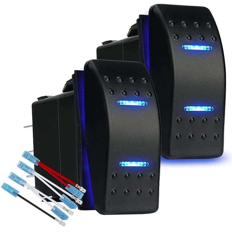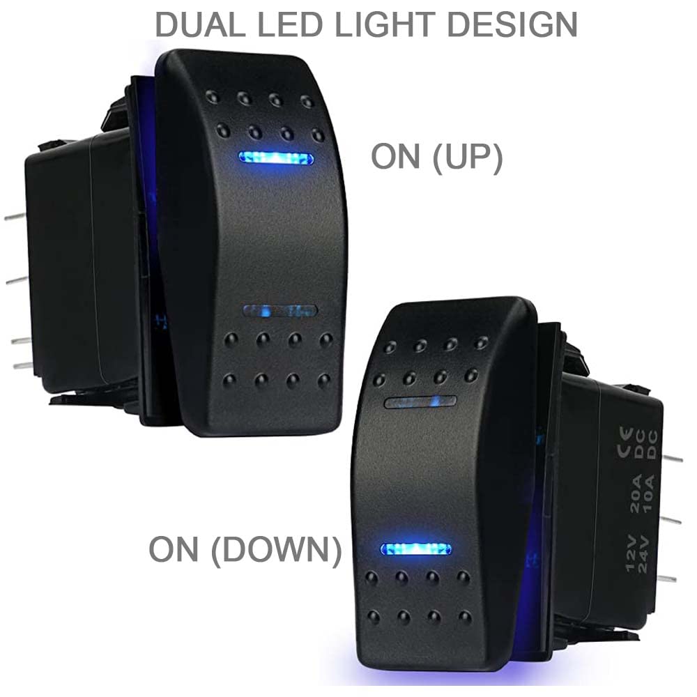 【Мгновенный переключатель】 Морской кулисный переключатель 12 В, DPDT с фиксацией ON-OFF-ON 3-позиционный кулисный тумблер с синей светодиодной подсветкой.
