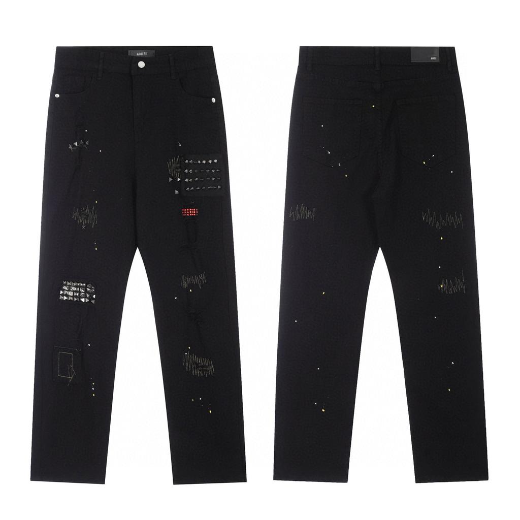 M43 Amiri мужские и женские джинсы в американском стиле с тканевыми заплатками, дырками, вышивкой, повседневные и модные брюки для улицы — купить товар онлайн с бесплатной доставкой по всему миру!