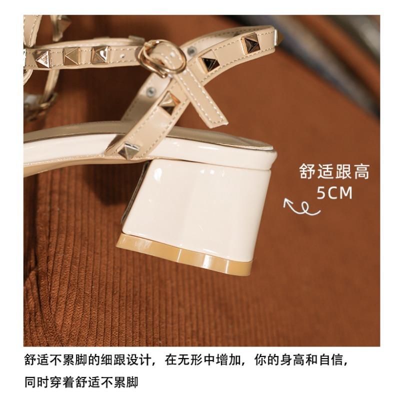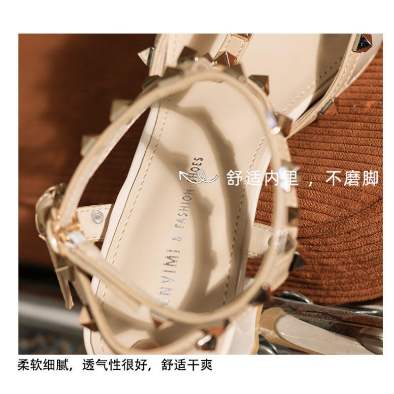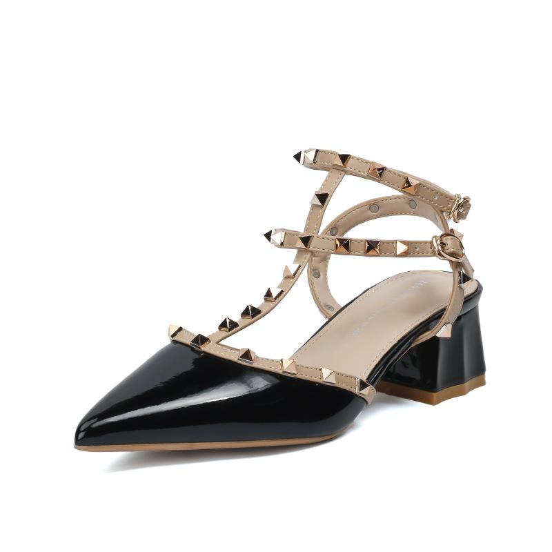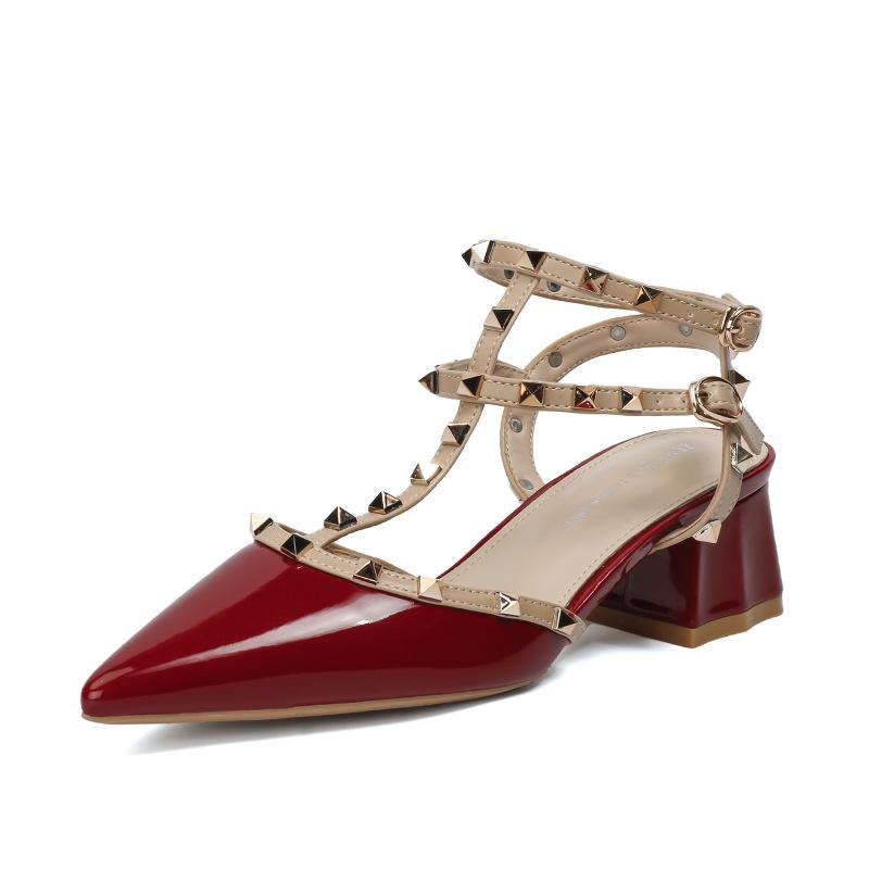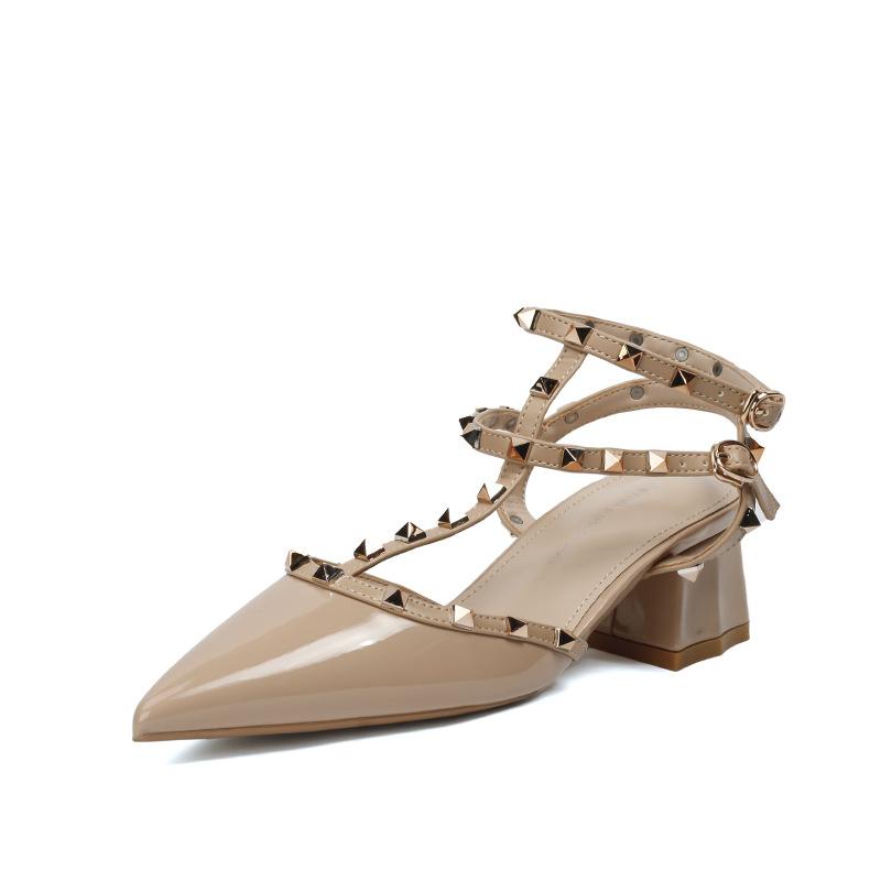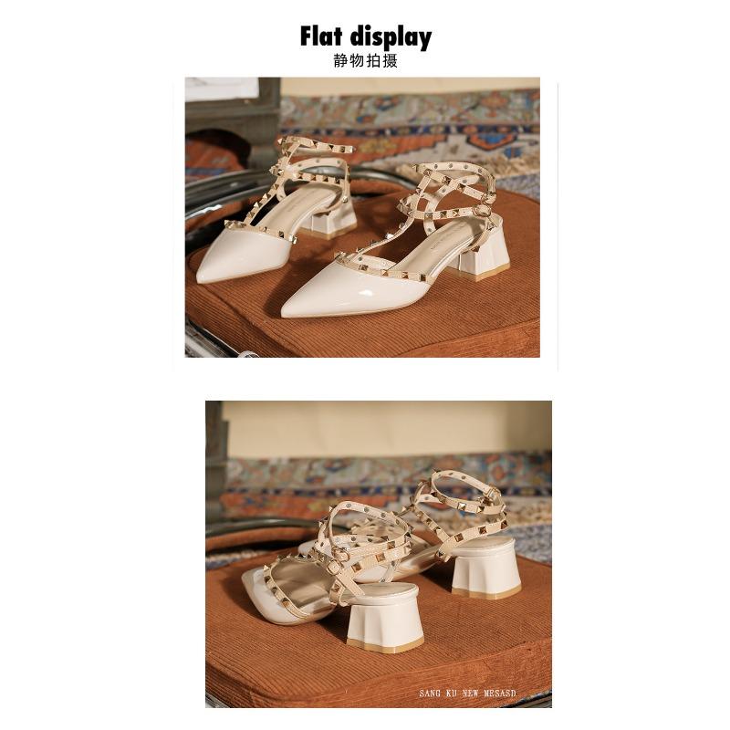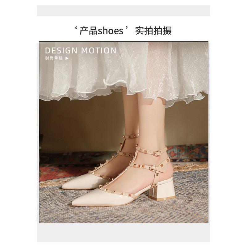 Женские босоножки на толстом каблуке, летние, новые модные босоножки на высоком каблуке с заклепками и острыми носами, женские