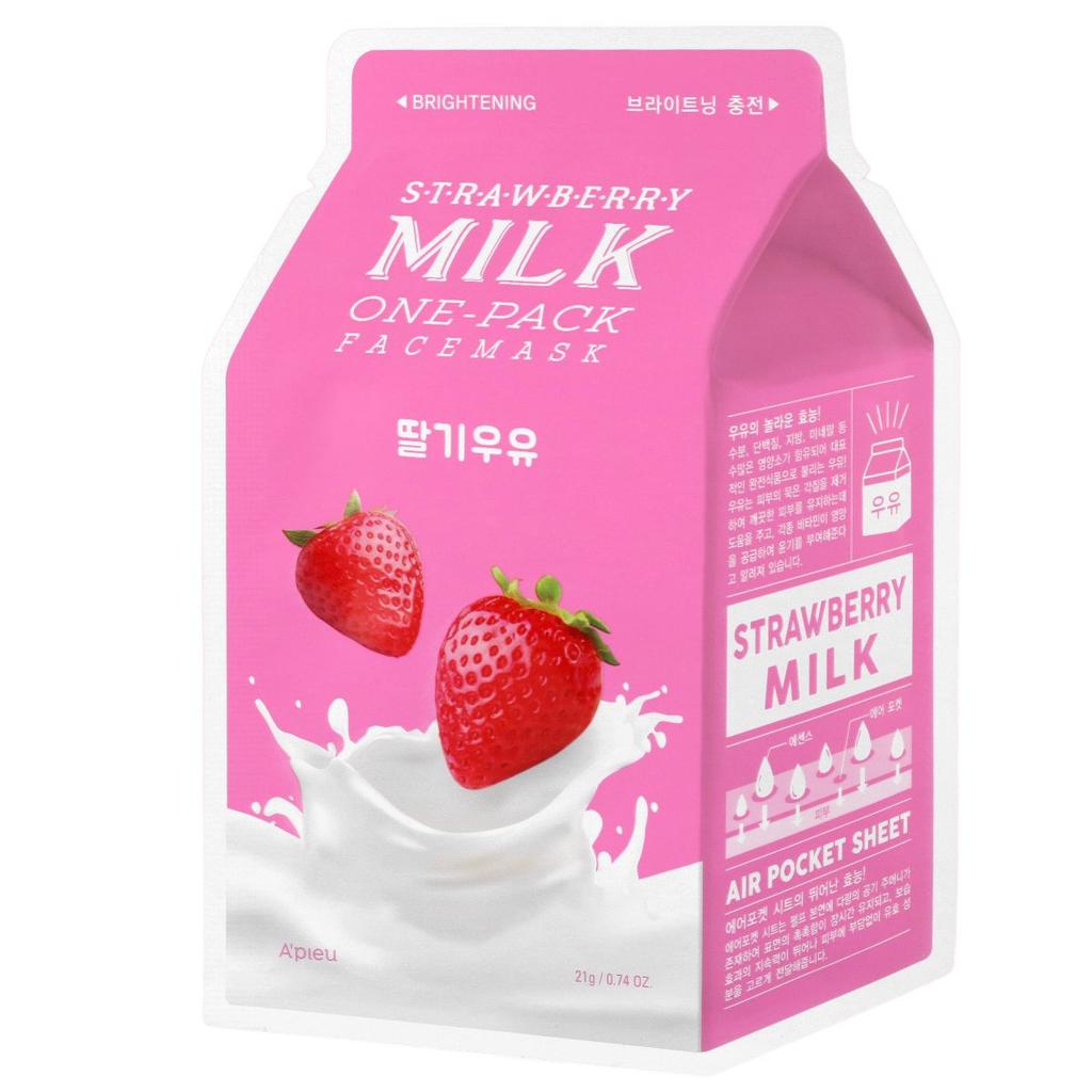 A’pieu Milk One Pack #Strawberry Milk to odświeżająca maseczka w płachcie, która rozjaśnia i wygładza skórę dzięki zawartości ekstraktu z truskawki oraz mlecznych protein. Idealna do codziennej pielęgnacji cery poszarzałej, zmęczonej i pozbawionej blasku.