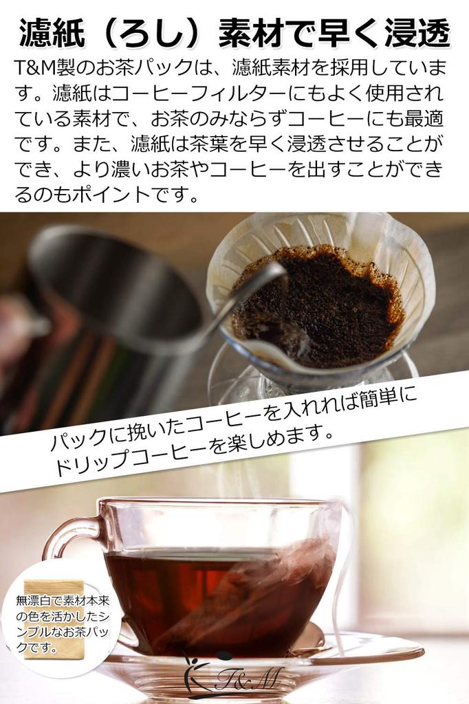 ✅3 [Фильтровальная бумага (фильтр) материал обеспечивает быстрое проникновение! ] Чайные пакетики "T&M" изготовлены из фильтровальной бумаги. Фильтровальная бумага — материал, часто используемый в кофейных фильтрах.. Поэтому этот продукт отлично подойдет не только к чаю, но и к кофе! Еще один момент заключается в том, что фильтровальная бумага позволяет чайным листьям быстро проникать вглубь, что позволяет получать более крепкий чай или кофе.. Простая неотбеленная чайная пачка, сохраняющая оригинальный цвет материала!
