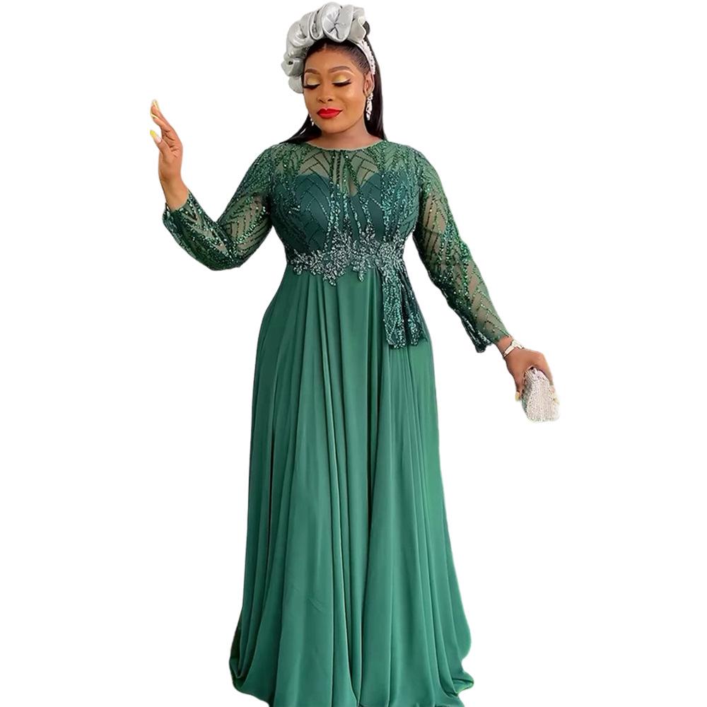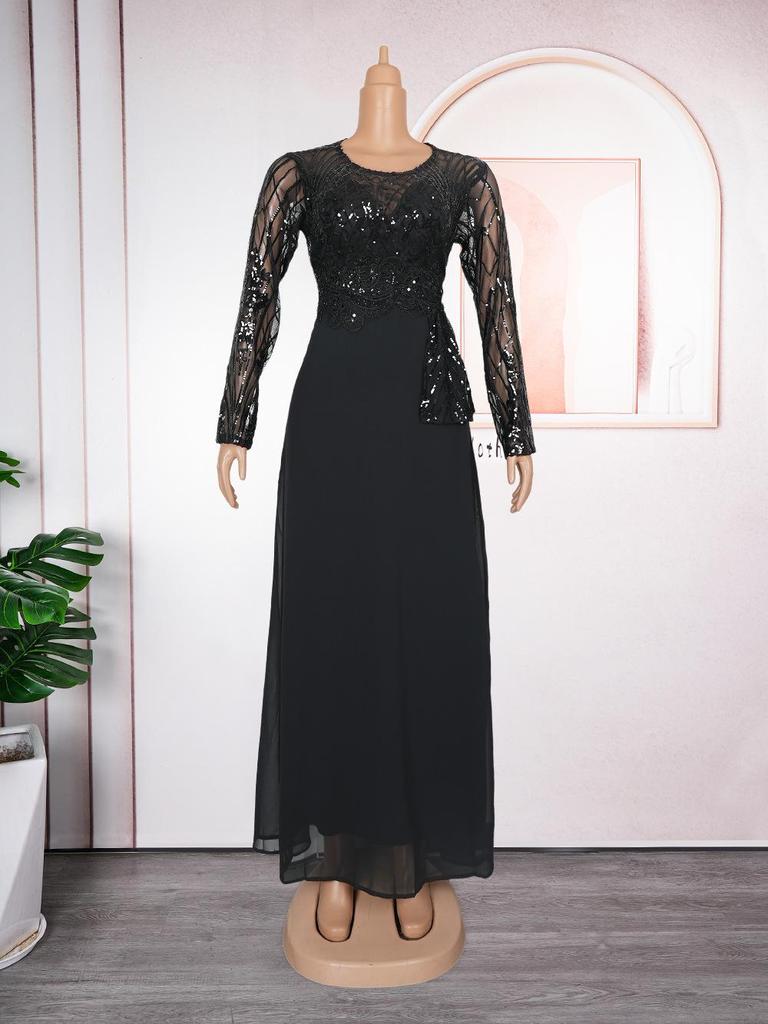Это элегантное платье создано для женщин plus-size, предлагая шикарный и изысканный образ для любого случая.. Платье выполнено из шифоновой ткани с бисером, которая красиво драпируется, придавая вашему силуэту нотку гламура.. Круглый вырез горловины придает изделию классический вид, а нежные пайетки обеспечивают легкий блеск, что делает его идеальным для вечерних мероприятий или особых встреч.. Платье изготовлено из высококачественного полиэстера, обеспечивает комфорт и долговечность, что делает его универсальным дополнением к вашему гардеробу, которое можно носить в Европе, Америке и Африке.