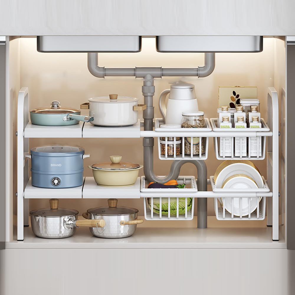 Под раковиной для хранения на кухне Под раковиной для хранения на кухне 2 уровня Под раковиной Телескопическая организованная ширина кухонного хранения Легко разместить
