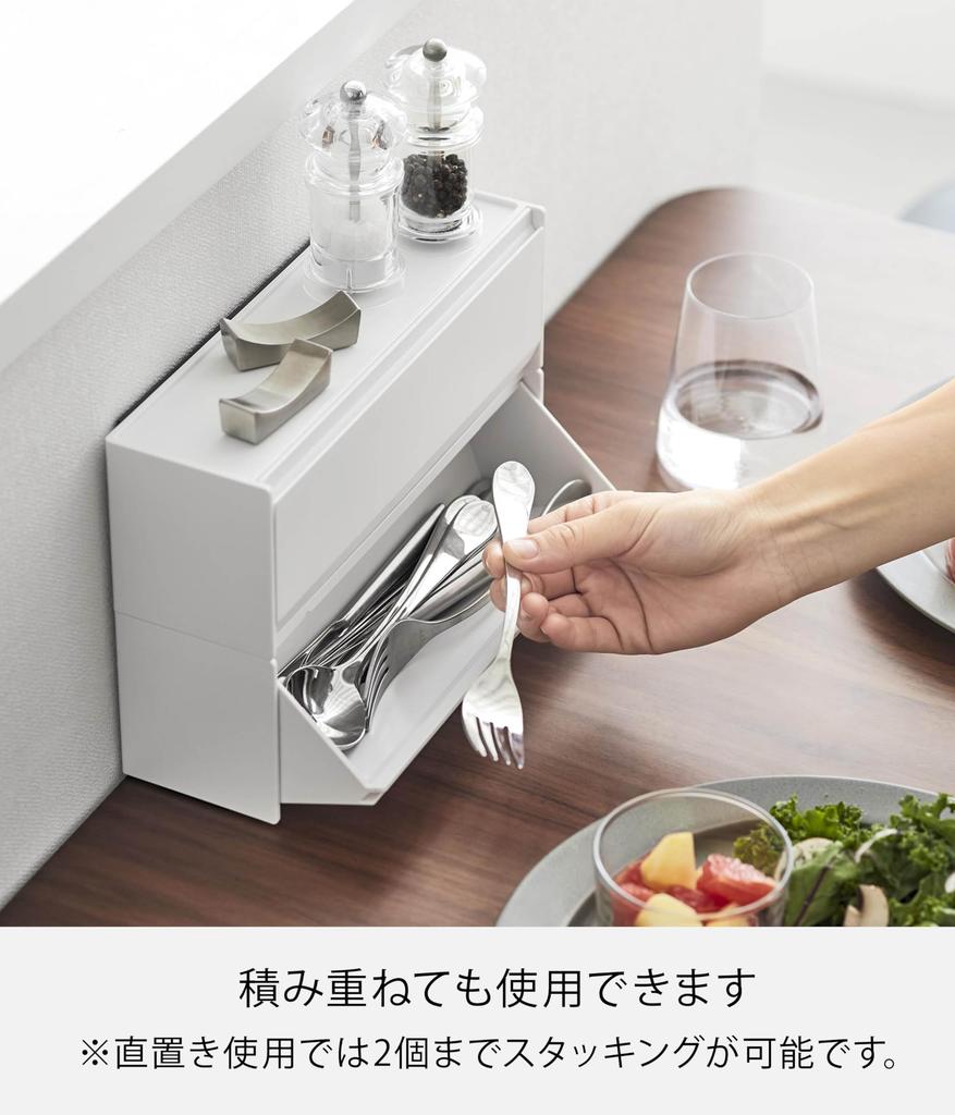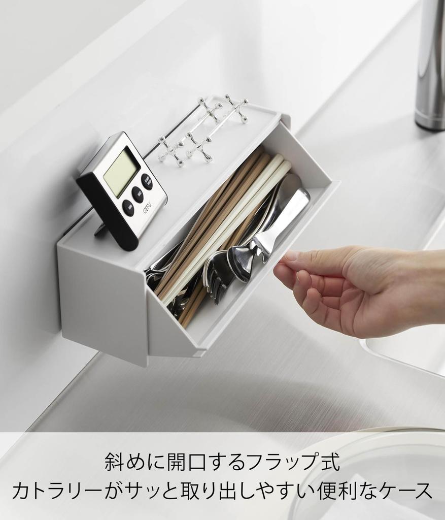 Yamazaki Магнитный органайзер для столовых приборов Ш26 х Г8 х Легко открывающийся и 8462 Кейс, Белый, Корпус В9см, Tower, закрывающийся, Штабелируемый,