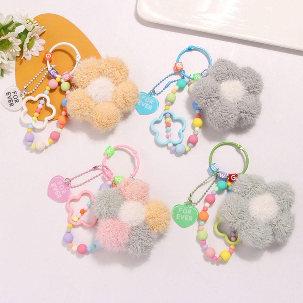 Плюшевая цепочка с бусинами для ключей, сумка, брелок, украшение для сумки, рюкзак, кулон, брелок, аксессуары
