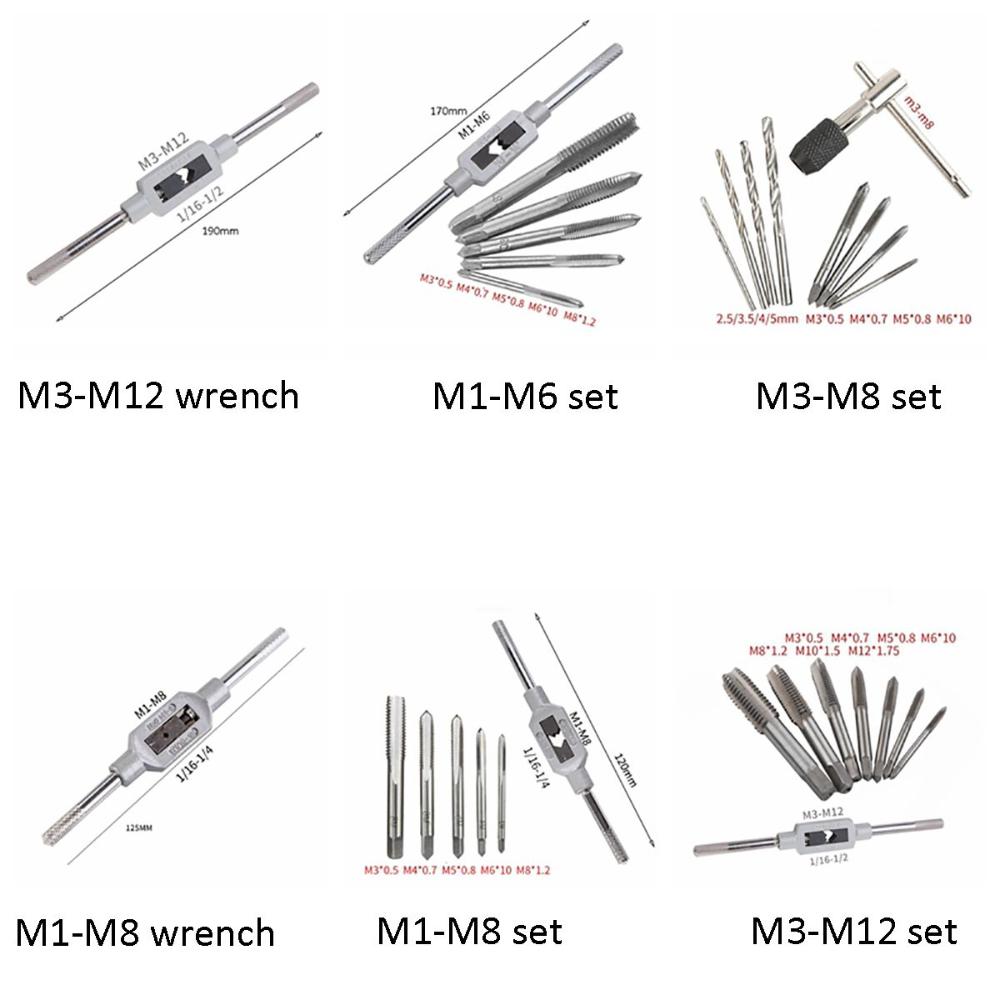Сверление с использованием стальной резьбы M1-M12 с метрической ручкой, прямой гаечный ключ для метчиков, набор метчиков и плашек