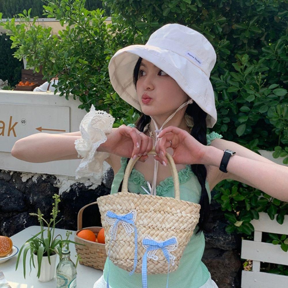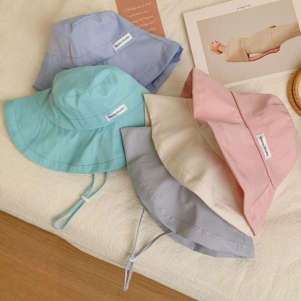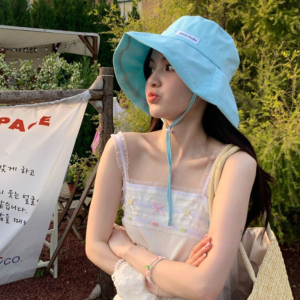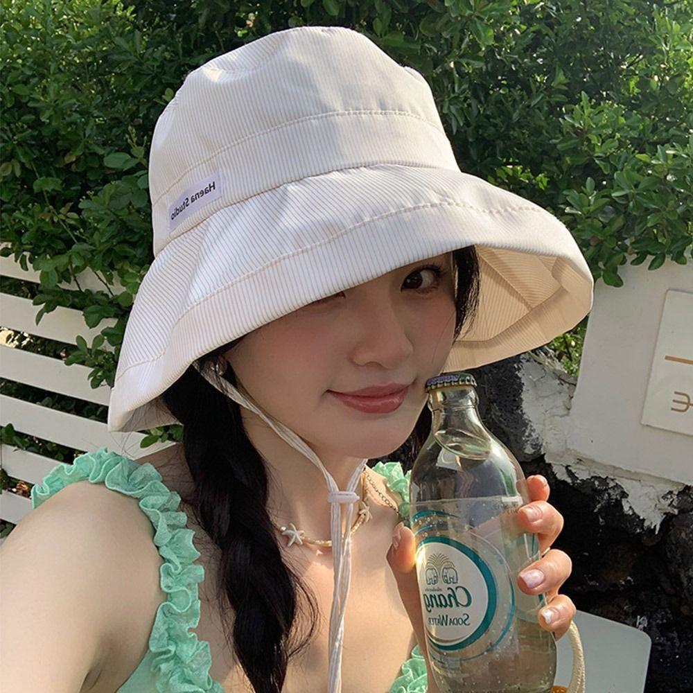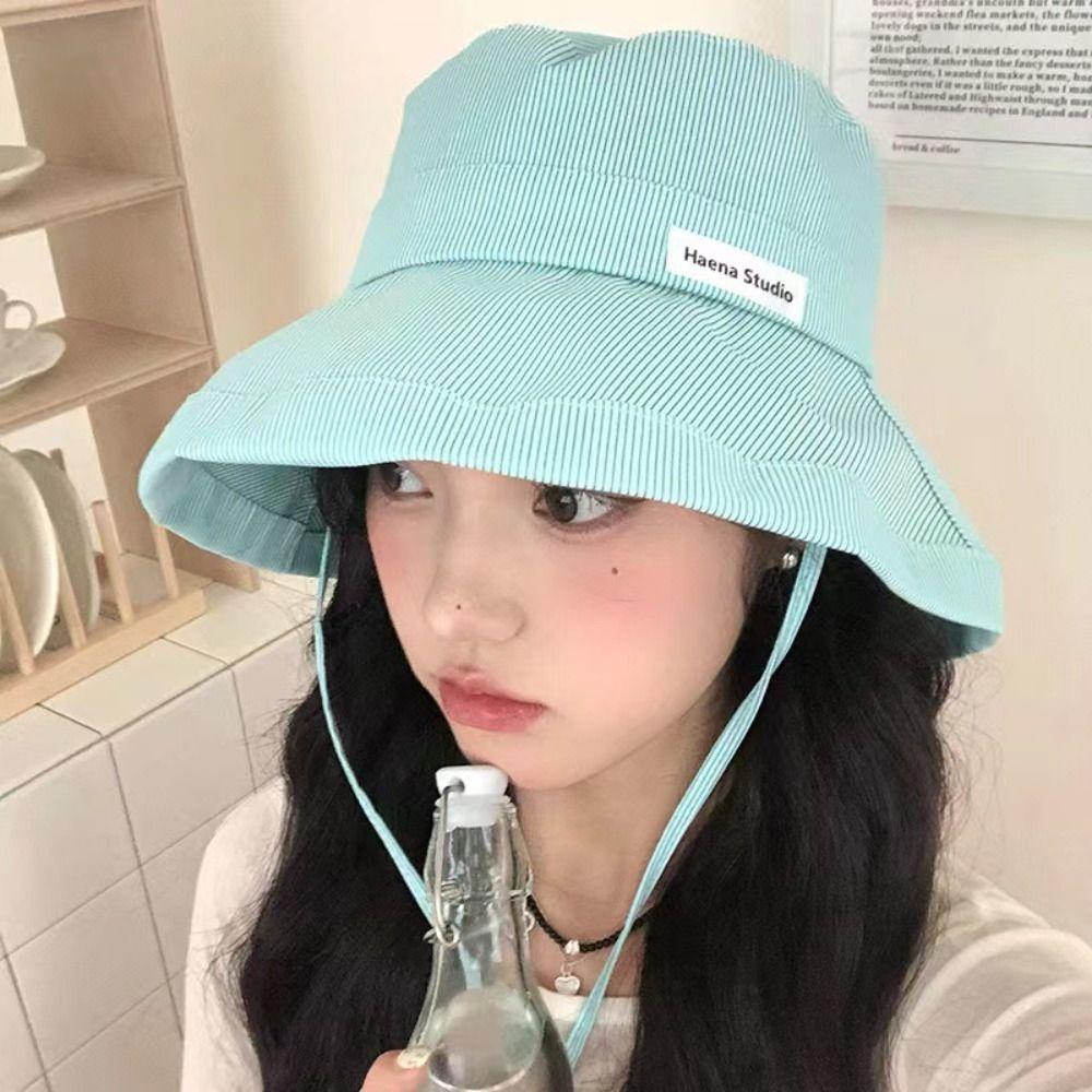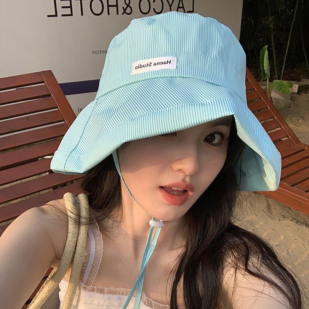 Korean Striped Bucket Hat Wide Brim Women's Sun Caps Ins Striped Fisherman Hat Travel
