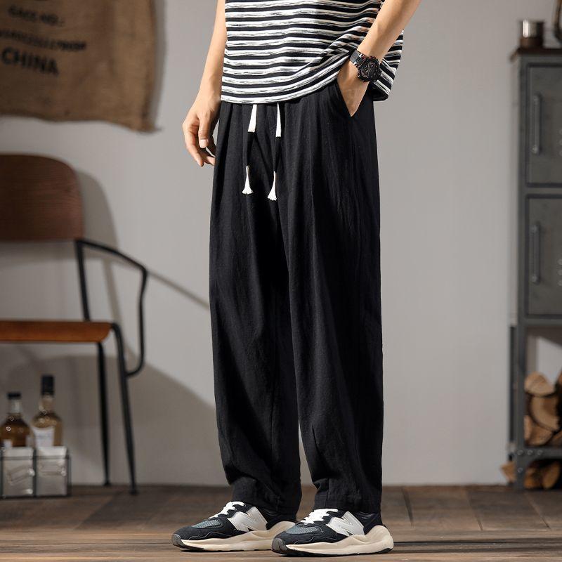 Мужские хлопковые льняные брюки, летние прямые повседневные спортивные брюки из ледяного шелка, мужские широкие льняные брюки большого размера, новинка 2024 года