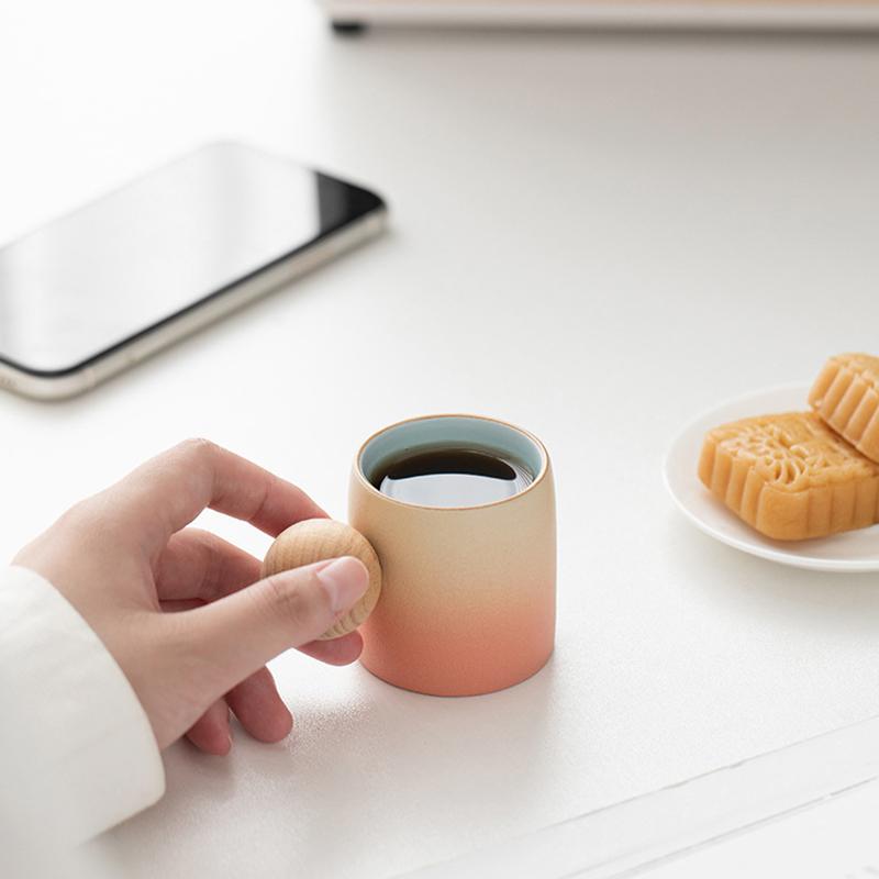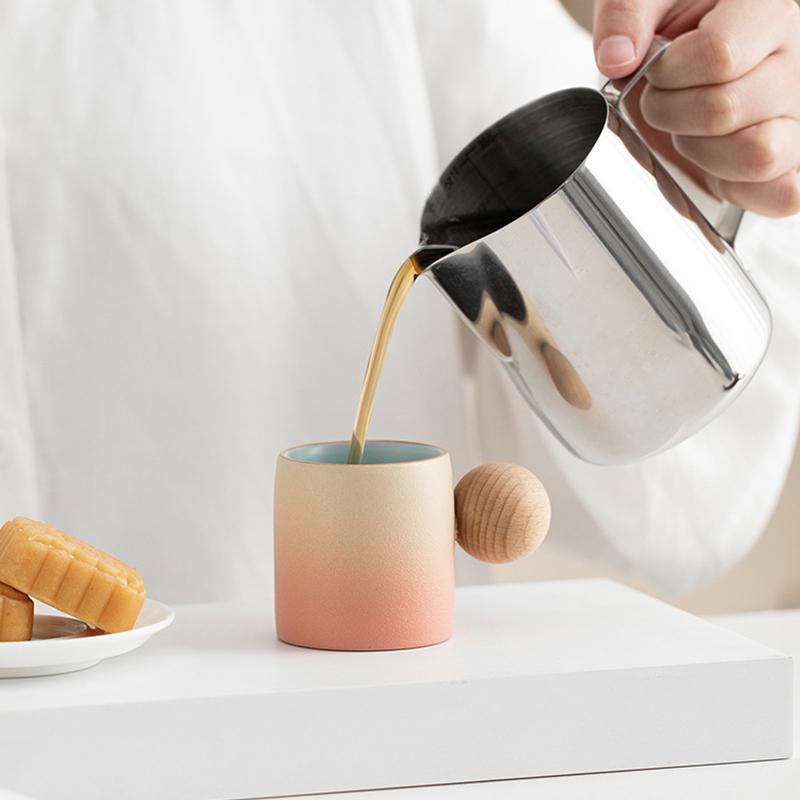 70 мл уникальная чашка для чая Stoare с деревянной ручкой-шариком, художественная керамическая кофейная кружка для послеобеденного чая