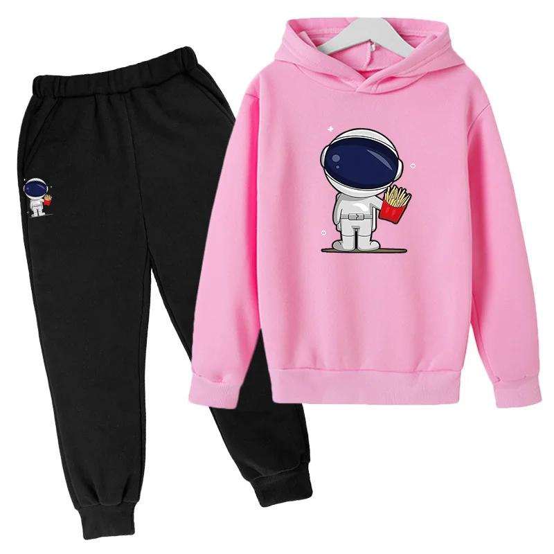 Комплекты с принтом астронавта из мультфильма для детей Одежда для девочек Одежда для девочек от 9 до 12 лет Топы Домашняя одежда Оверсайз