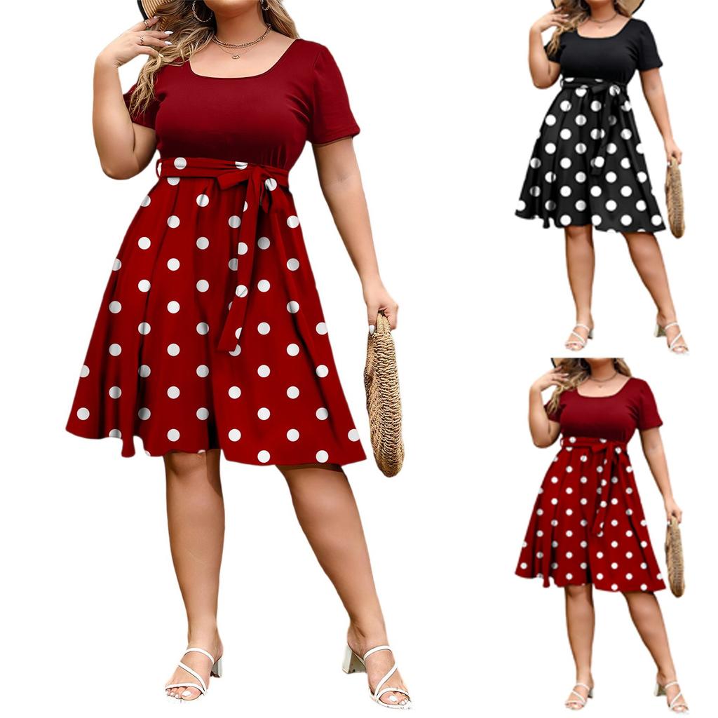 Женское модное и трендовое платье с круглым вырезом и короткими рукавами на талии с принтом размера плюс — купить товар онлайн с бесплатной доставкой по всему миру!