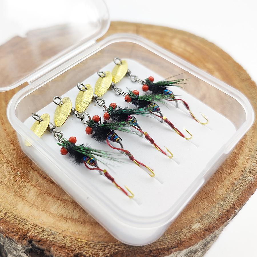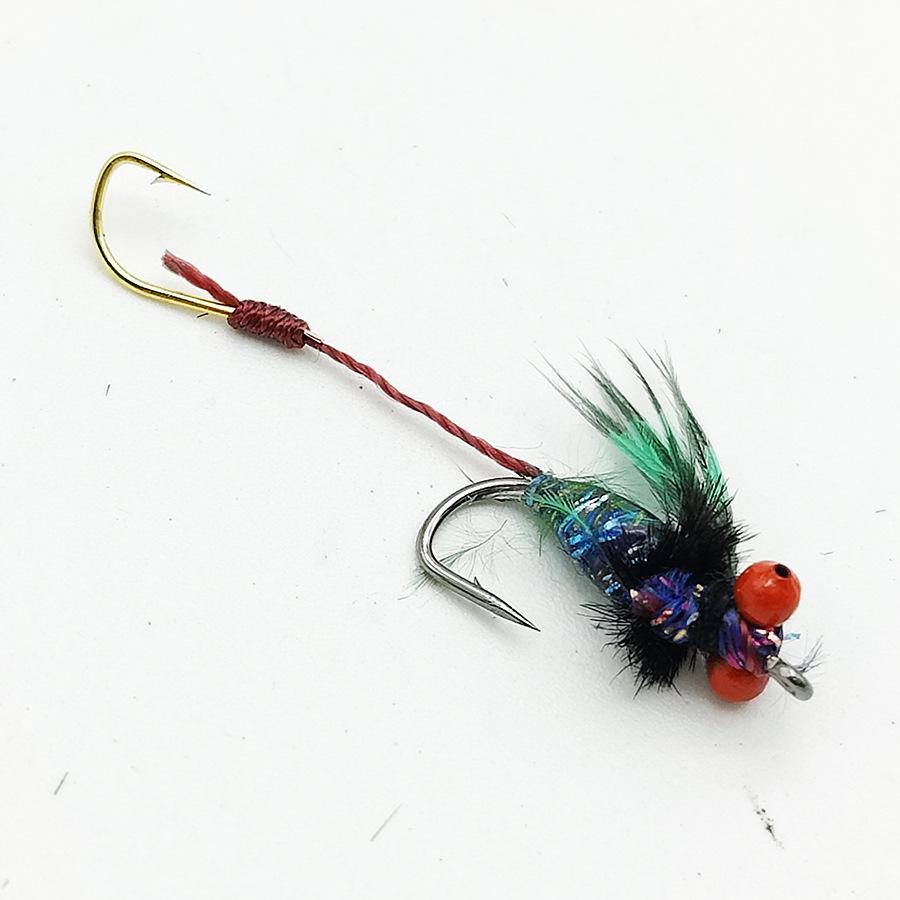 Двухкрючковая муха «Гремучая змея»: Красочная микроблесна «Крыло» для комара, пескаря, полосатой рыбы — Бионический наночервь.