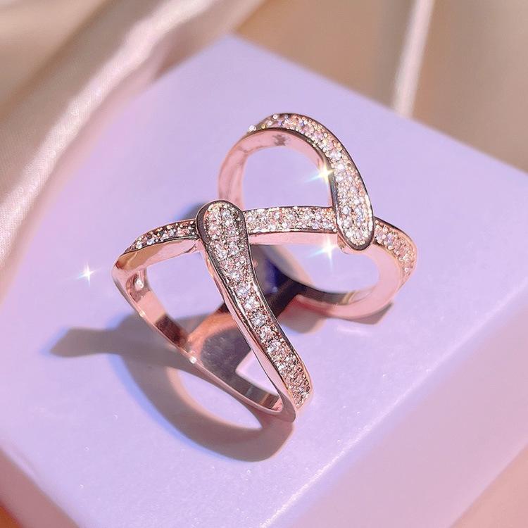 Европейская и северо-модная геометрическая линия с покрытием из розового золота, микронабор из цирконов, кольцо-цепочка, трендовое кольцо для девочки