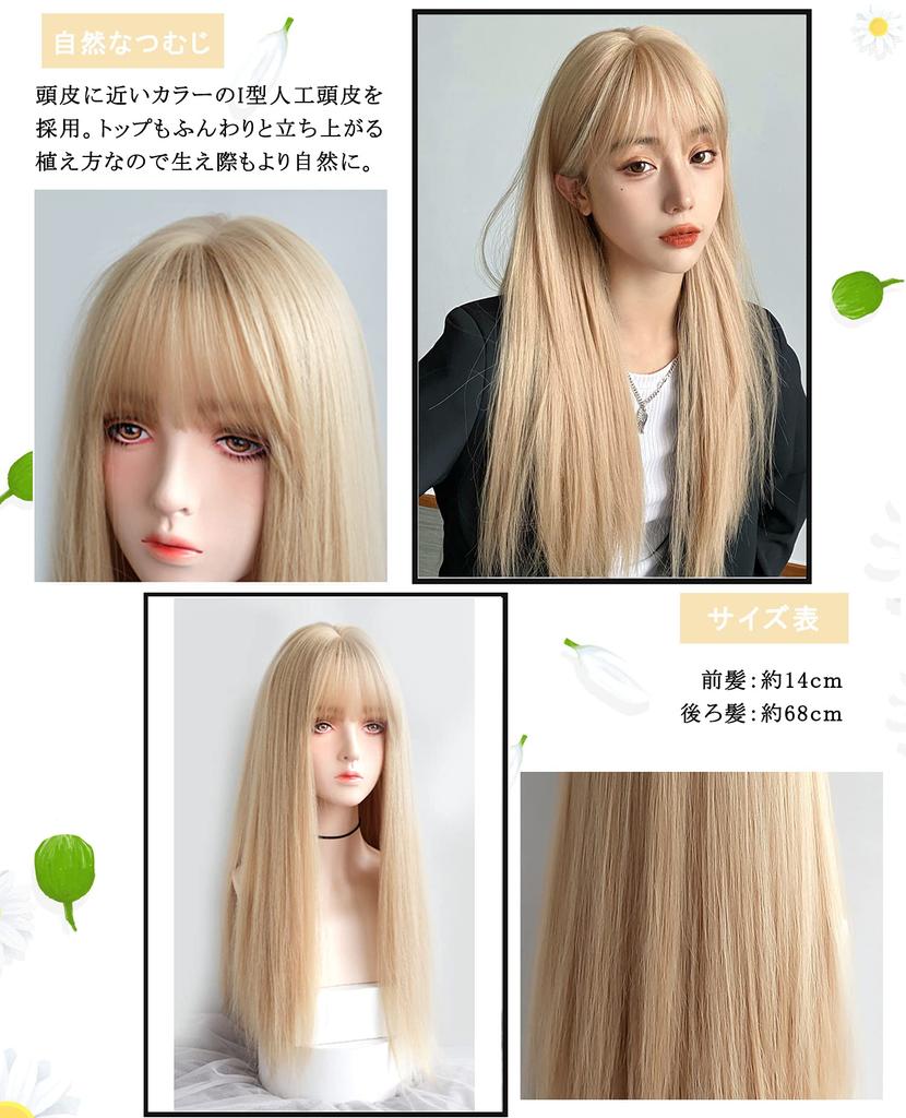 Парик длинный прямой парик полный парик натуральный косплей мой короткое лицо маленькое лицо популярный термостойкий парик в стиле Харадзюку модный гребень блонд золотой сеткой/с