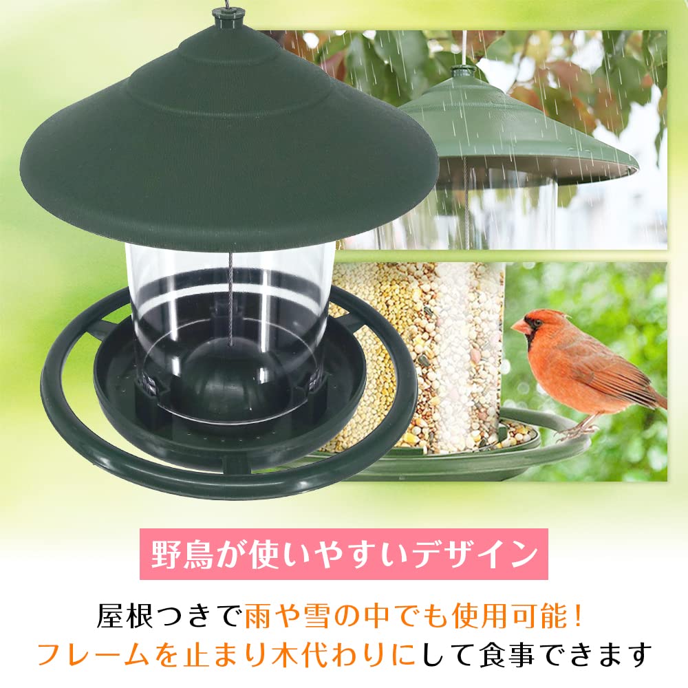 Кормушка для птиц Кормушка для птиц Подвесная, легко устанавливаемая, с крюком на крыше из пластика, большой емкости (зеленый)