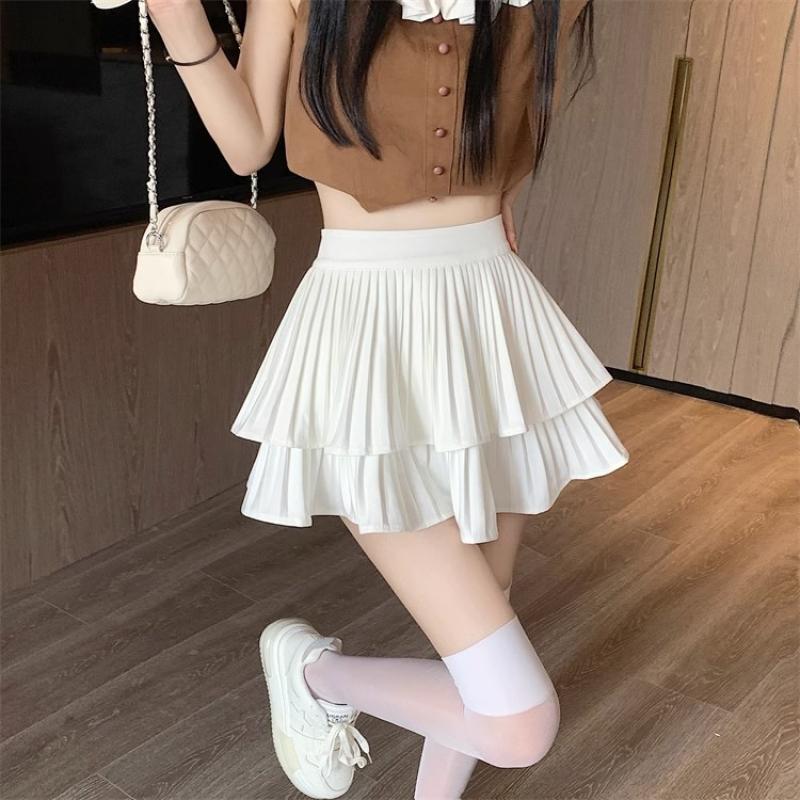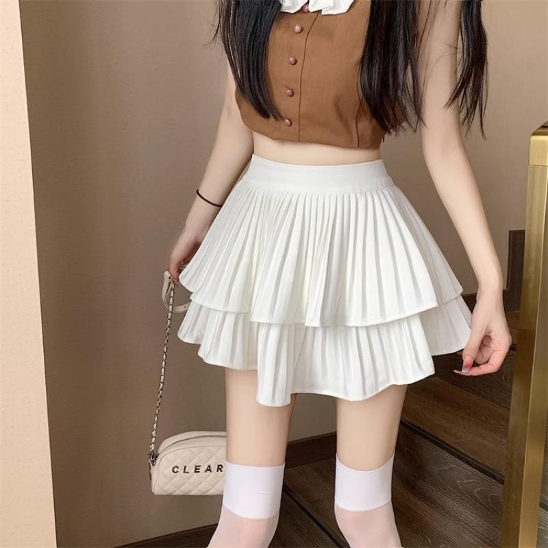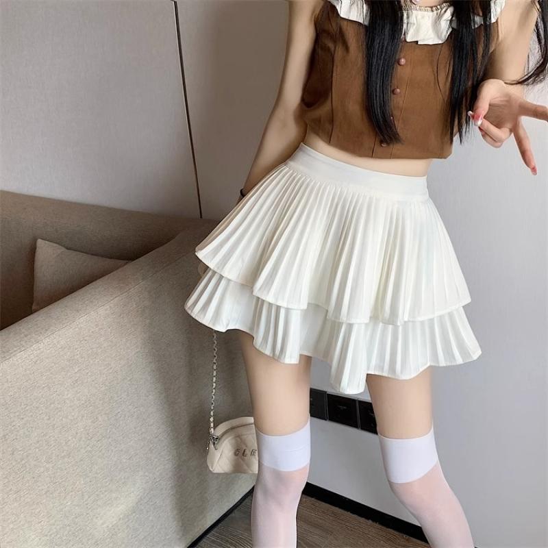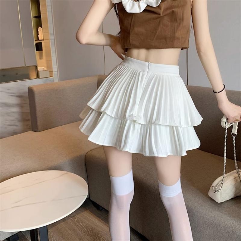 Женская плиссированная мини-юбка трапециевидной формы с рюшами, летняя тонкая юбка с высокой талией и шортами, женские сексуальные корейские каваи, белые