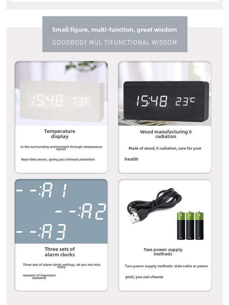 Бесшумный светодиодный ретро деревянный будильник - Креативный и светящийся для спальни или гостиной