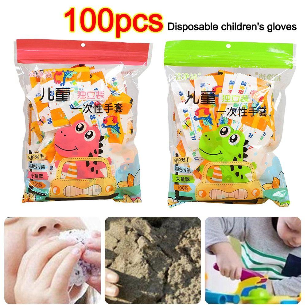 100 шт. Перчатки детские пищевые прозрачные перчатки для малышей перчатки с мультяшной росписью 3-12 лет