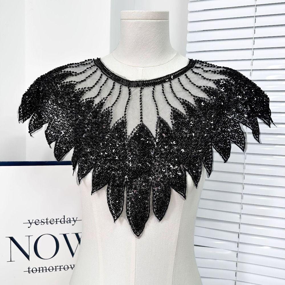 Блестящий кружевной вырез с аппликацией из бисера, нашивка на вырезе, имитация воротника, блестки, кружевной воротник, шитье