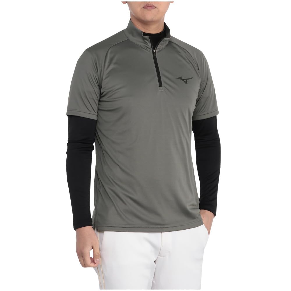 Комплект многослойной одежды для гольфа с коротким рукавом, молнией до половины длины, длинным рукавом, воротником-стойкой, быстросохнущий, E2MHB501, угольно-серый x черный [Mizuno] UPF50+, мужской