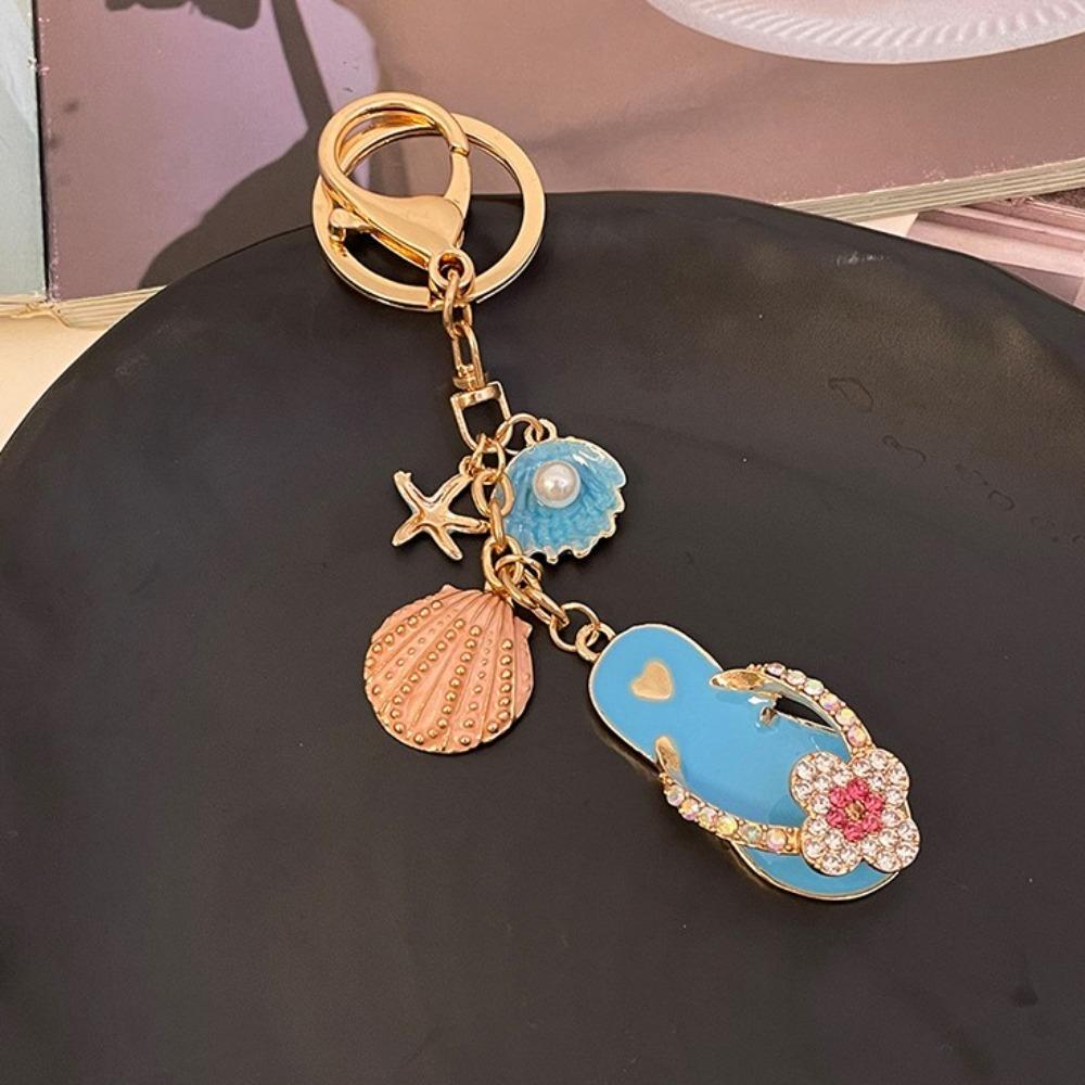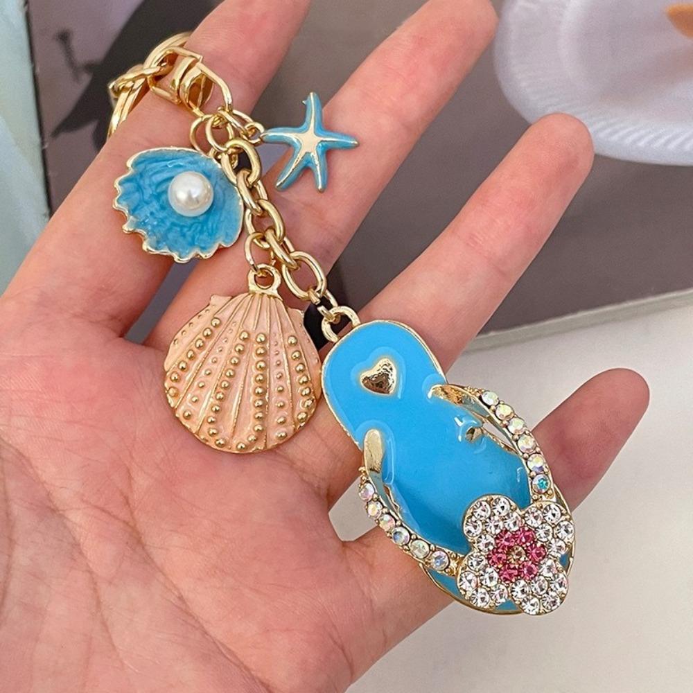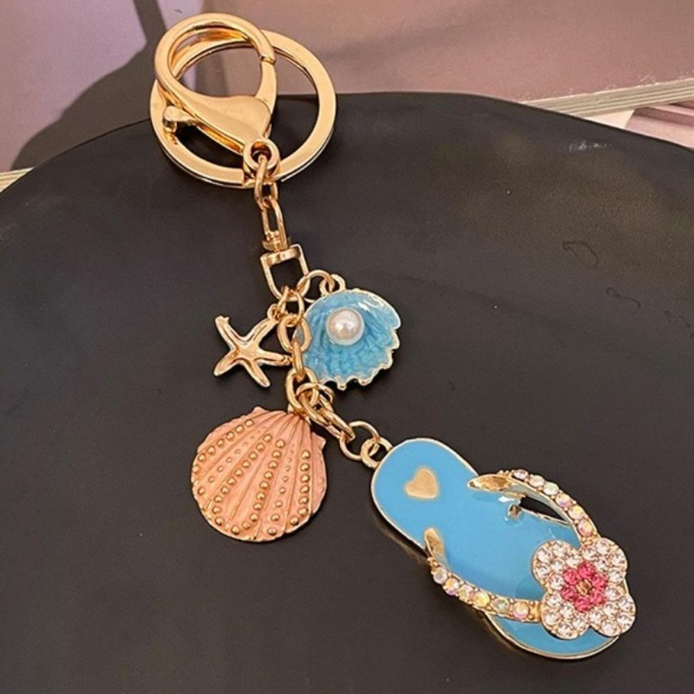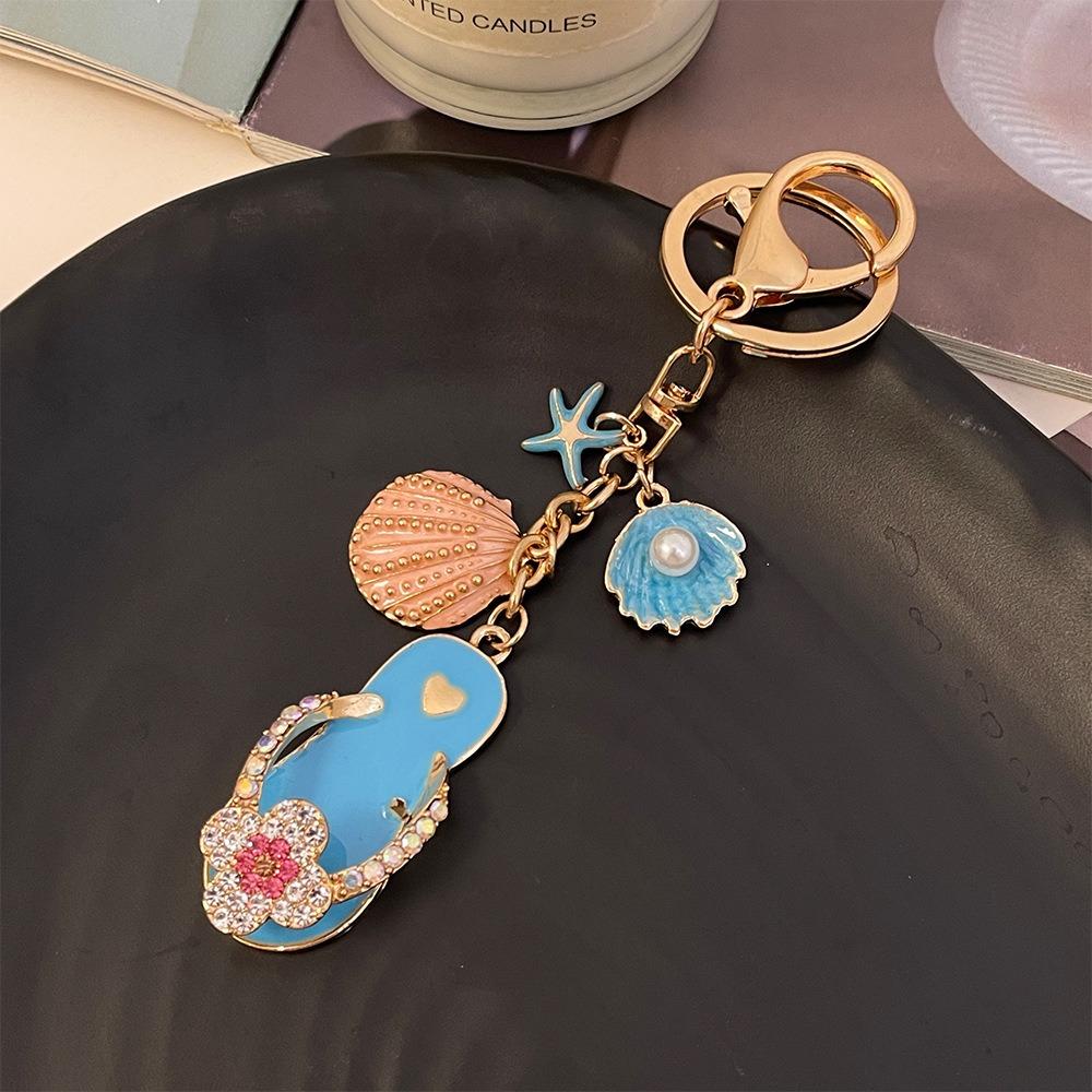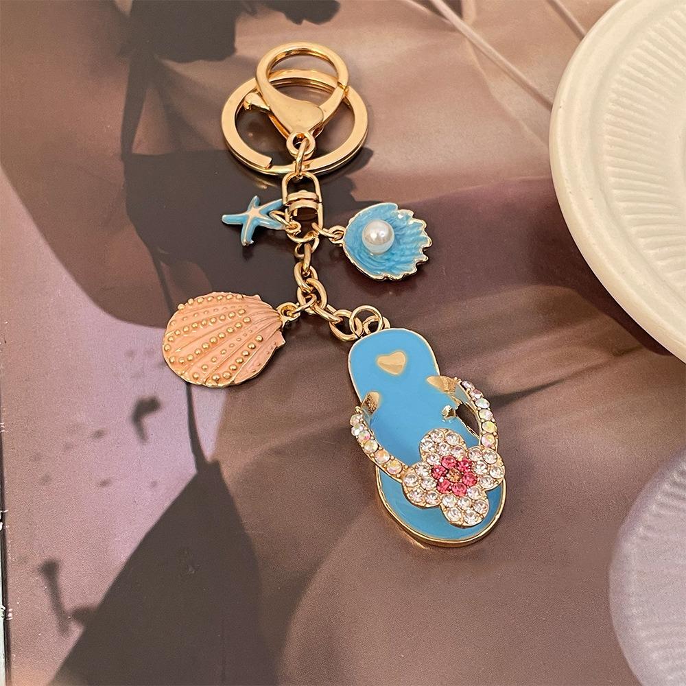 Милые подвески на морском пляже, четырехлистный клевер, ракушка-звезда, брелок, модная цепочка для ключей в виде тапочек для вечеринки