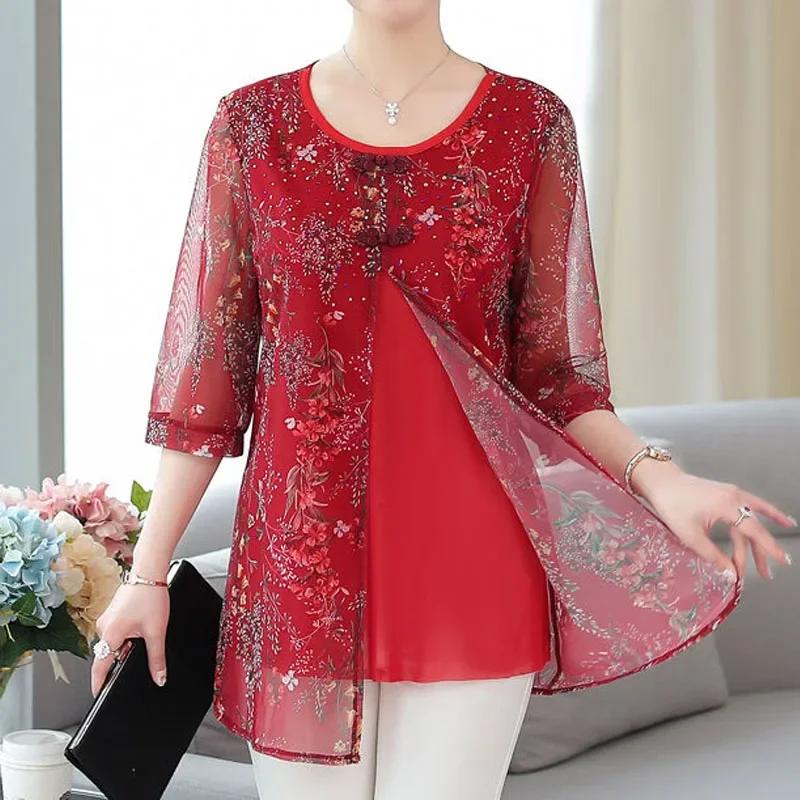 Женская одежда, летняя футболка из шифона с винтажным цветочным принтом и коротким рукавом, летняя повседневная мода, сшитая из двух частей, топы с круглым вырезом — купить товар онлайн с бесплатной доставкой до всему миру!