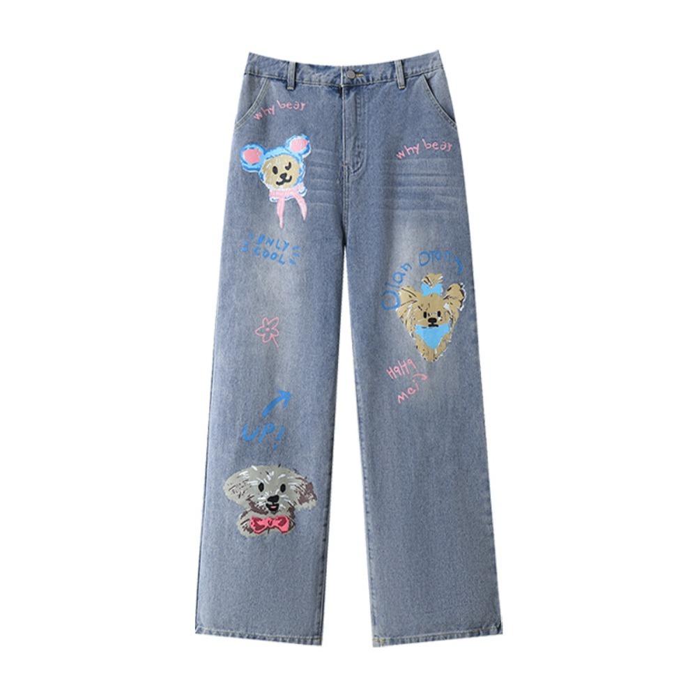 Прямые джинсовые брюки Ins Милые мультяшные ковбойские штаны Джинсы Харадзюку Женские Y2K Весна Осень — купить товар онлайн с бесплатной доставкой до всему миру!