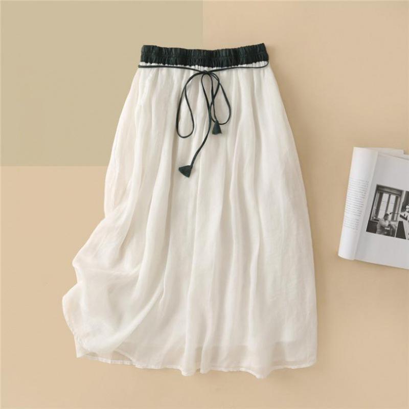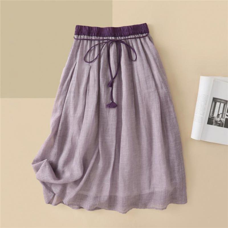 Летняя ретро-юбка свободного покроя с эластичной резинкой на талии, женская юбка средней длины А-силуэта