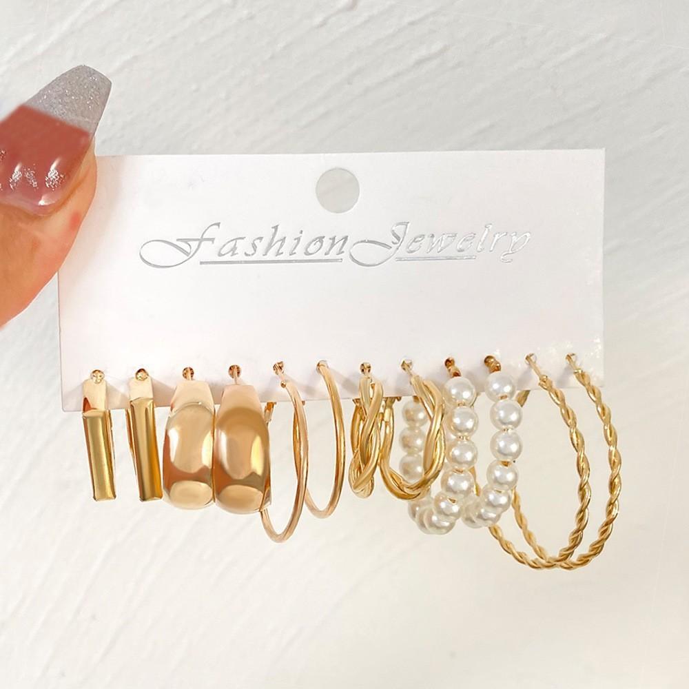 Серьги из сплава, квадратные геометрические серьги, классические серьги в стиле ретро, комплект из 6 сережек