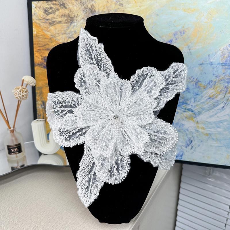 1 шт., декоративные кружевные нашивки с блестками и бисером, многослойные аксессуары для одежды, белые, высокое качество, ручная работа