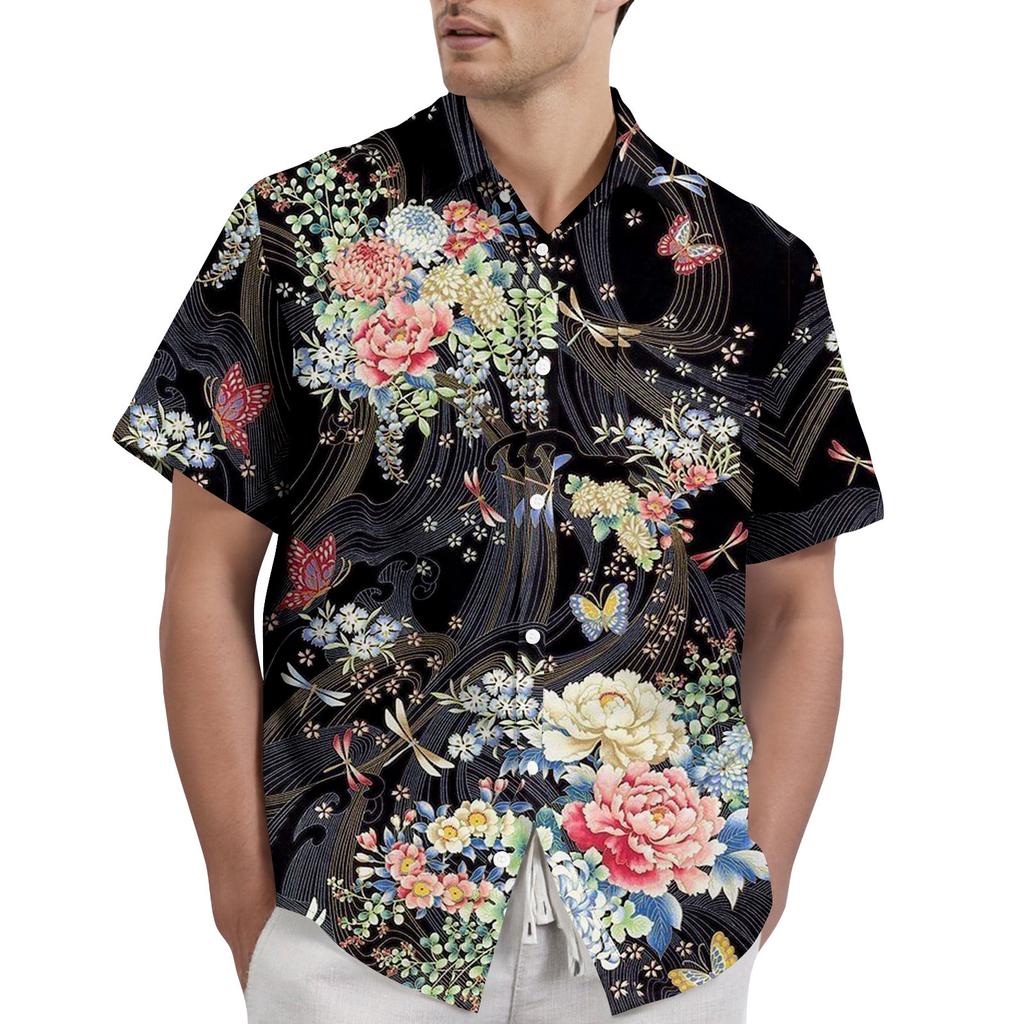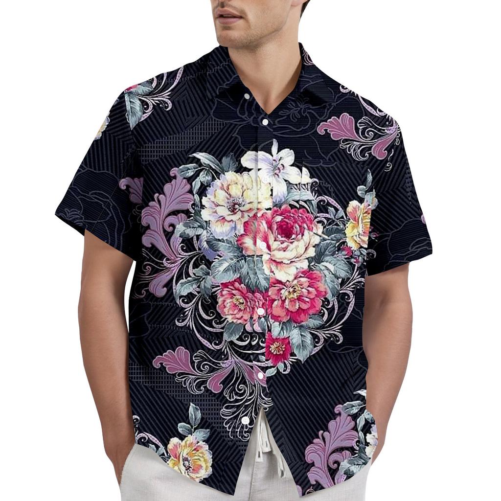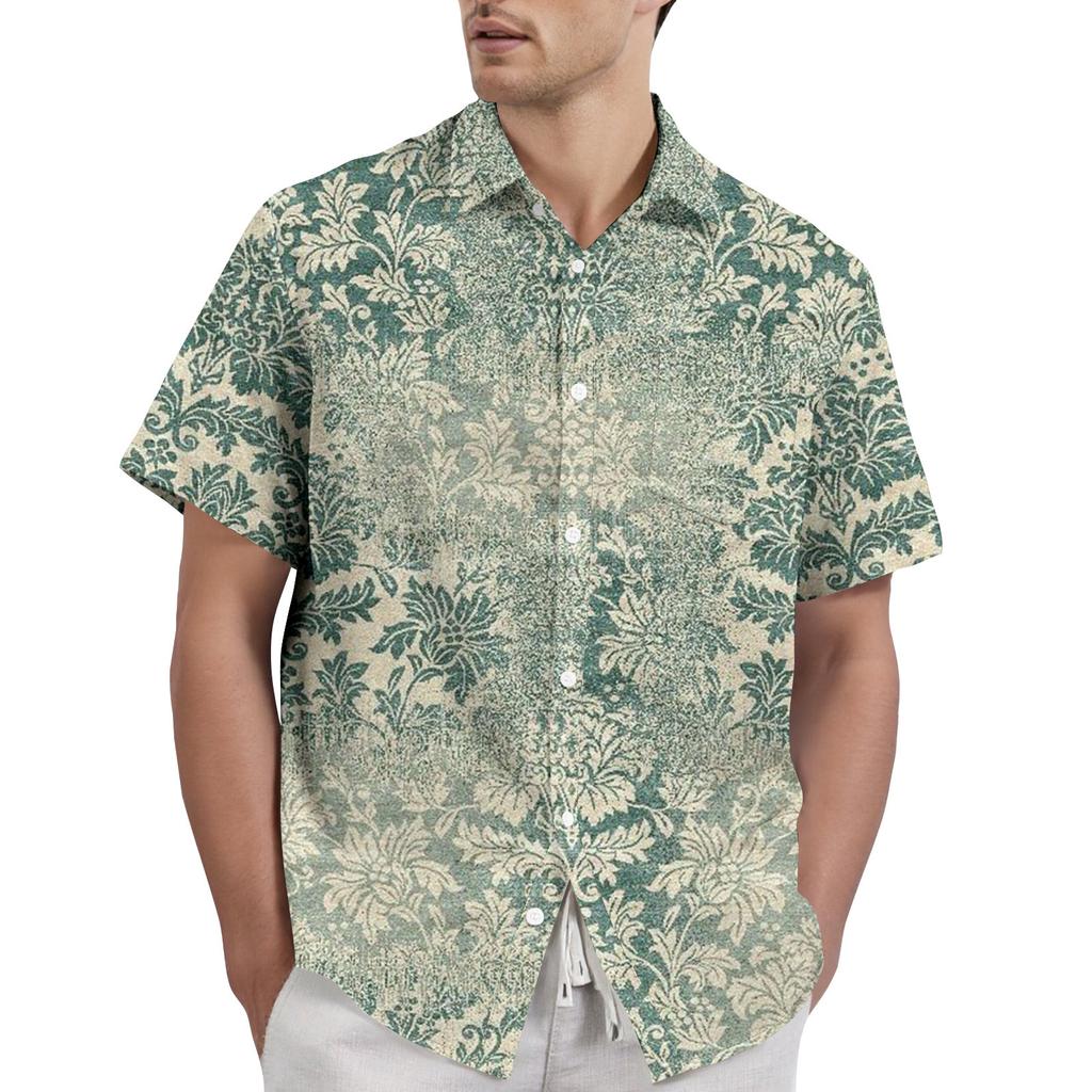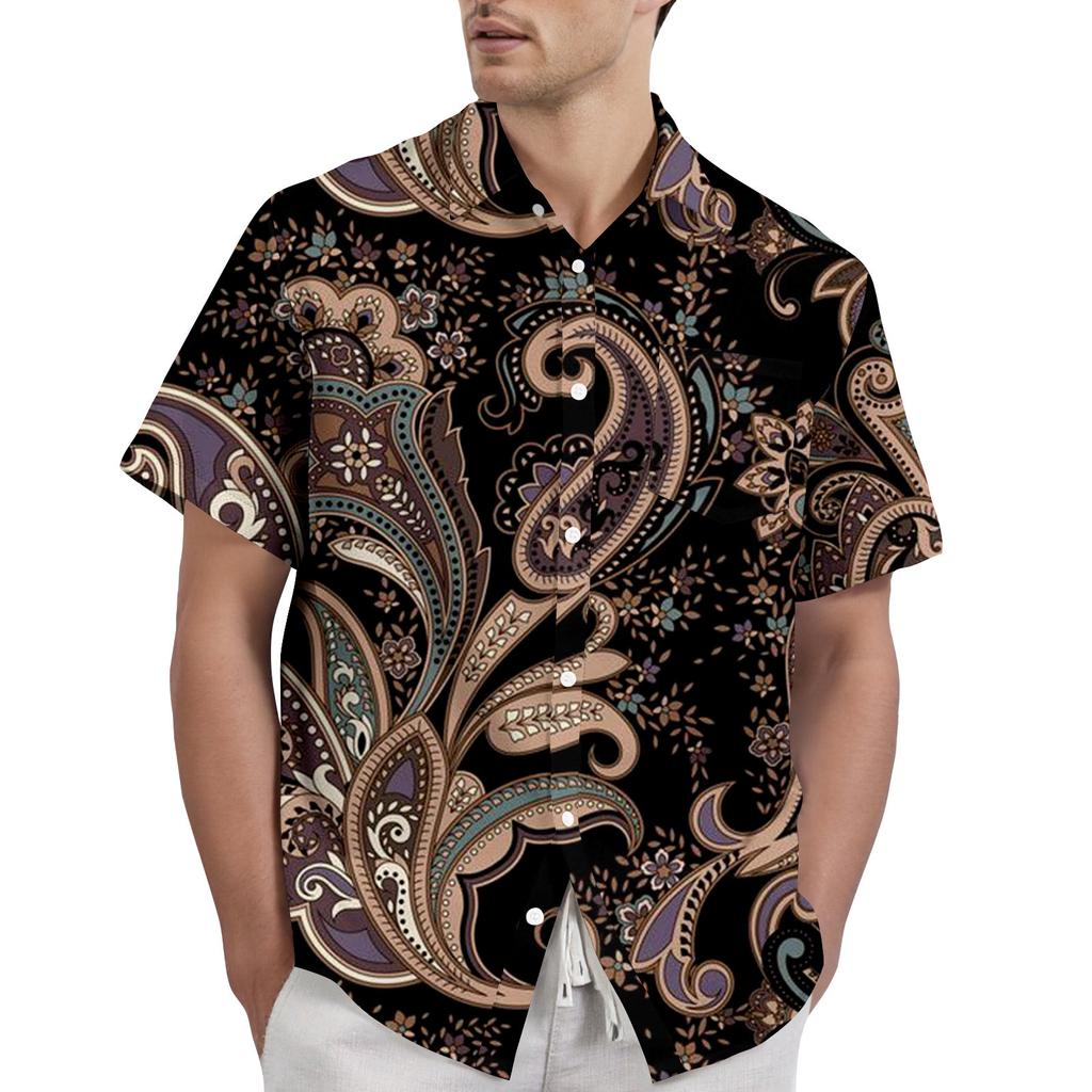 Ретро-богемный принт - мужская повседневная рубашка с коротким рукавом