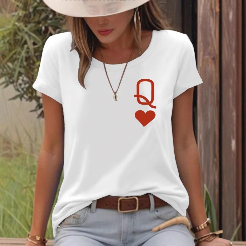 Повседневная футболка с сердечками. Летний топ с круглым вырезом и короткими рукавами.