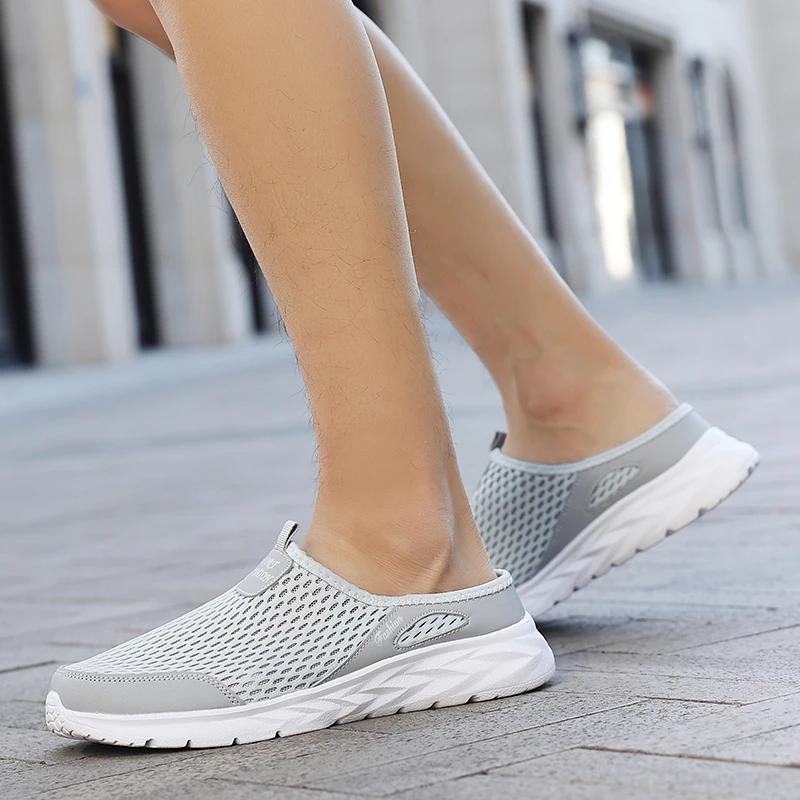 Мужские полутапочки летние дышащие сетчатые мужские туфли повседневные прогулочные туфли большие плоские легкие сетчатые тапочки сандалии
