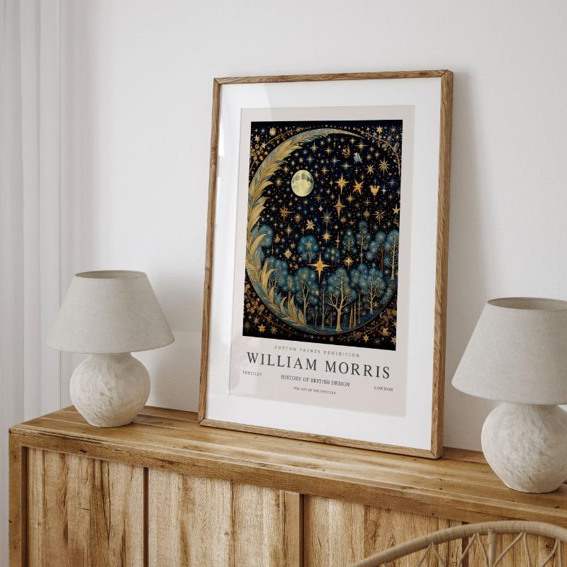Винтажная выставка Уильяма Морриса Бабочка Луна и звезды Художественный постер Картина на холсте Настенная печать Картина Гостиная Домашний декор Без рамки