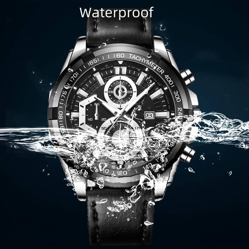 Часы Quartz Machine Core для мужчин, водонепроницаемые, светящиеся, с календарем и указателем, повседневные, с кожаным ремешком