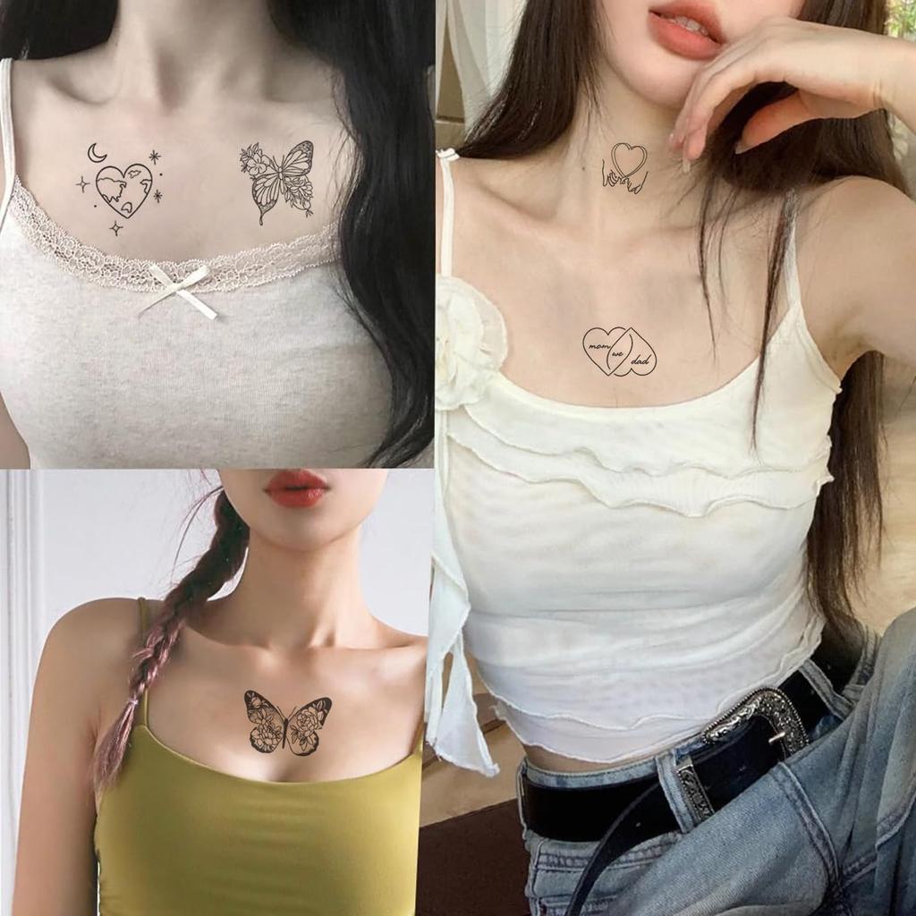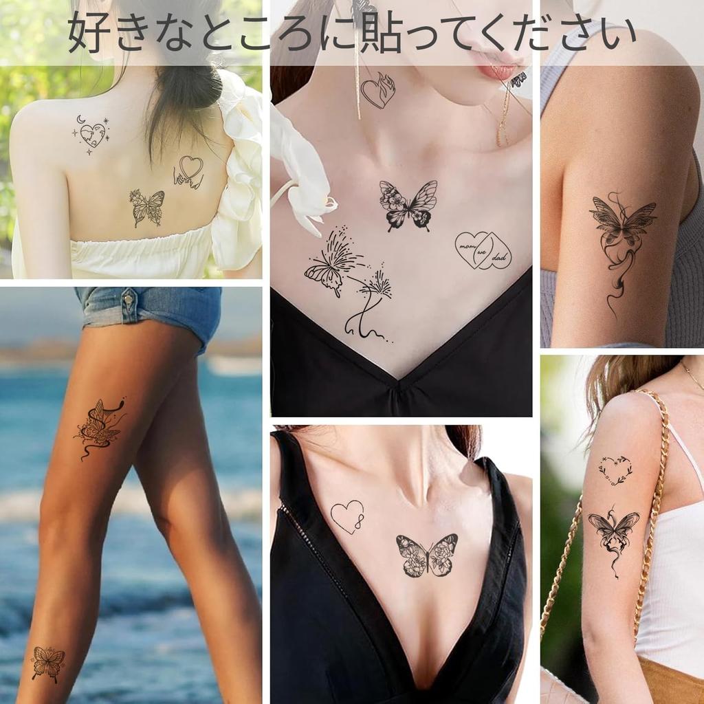 ❇️ [Содержимое набора] Набор из 3 наклеек-татуировок с изображением бабочек и любви. Размер: приблизительно. 11см х 18см.