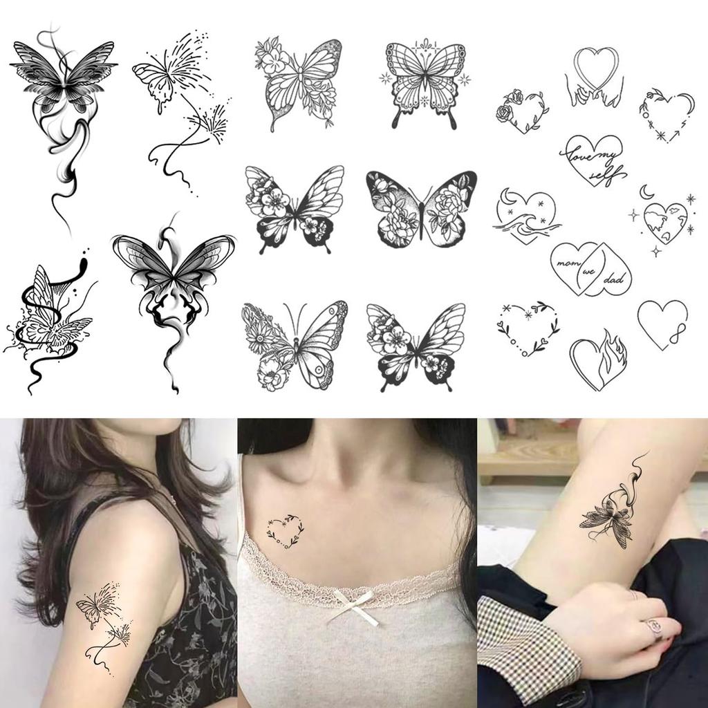 Наклейки на татуировки, 3 шт., татуировки, которые исчезают через 2 недели, наклейки на татуировки, бабочка, любовь, водонепроницаемые, легко наносятся на руки, ноги, тело, грудь, плечи, спину