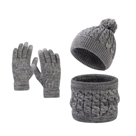 Оставайтесь теплыми и стильными: Этот комплект из шапки, шарфа и перчаток изготовлен из смеси акрила и полиэстера, что обеспечивает комфорт и долговечность в холодные зимние месяцы.. Классический вязаный дизайн добавит нотку стиля вашему зимнему гардеробу.