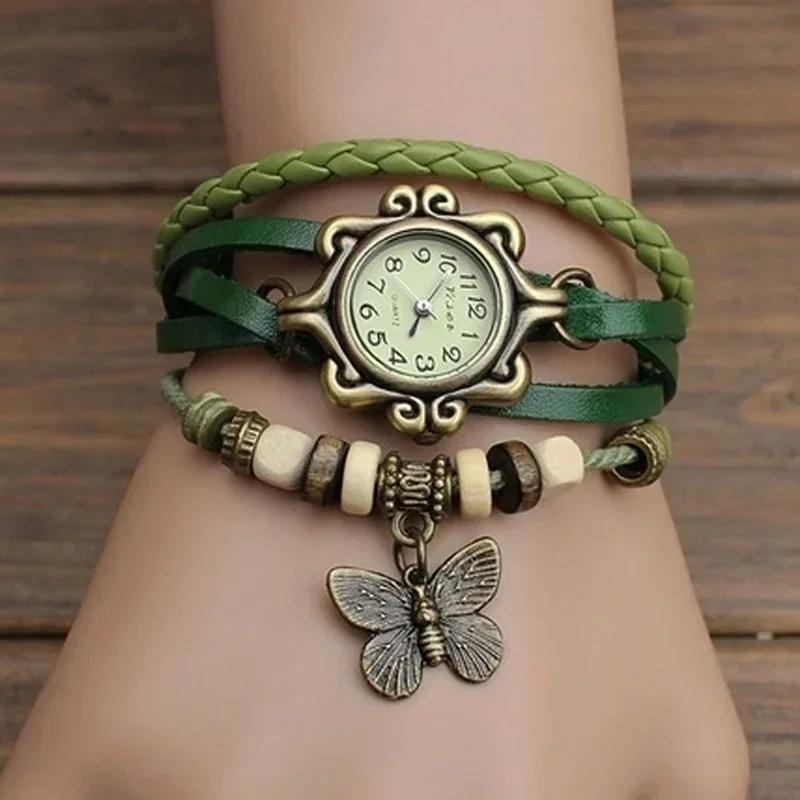 Женские винтажные кварцевые часы из натуральной кожи, многослойный браслет ручной работы, наручные часы, регулируемая длина, браслет для парных часов