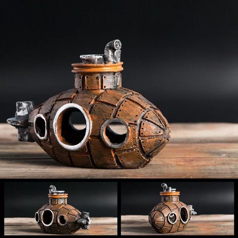 Украшение для ландшафтного дизайна аквариума, подводная лодка, украшение из смолы для аквариума, пещера для разведения, укрытие для рыб и креветок