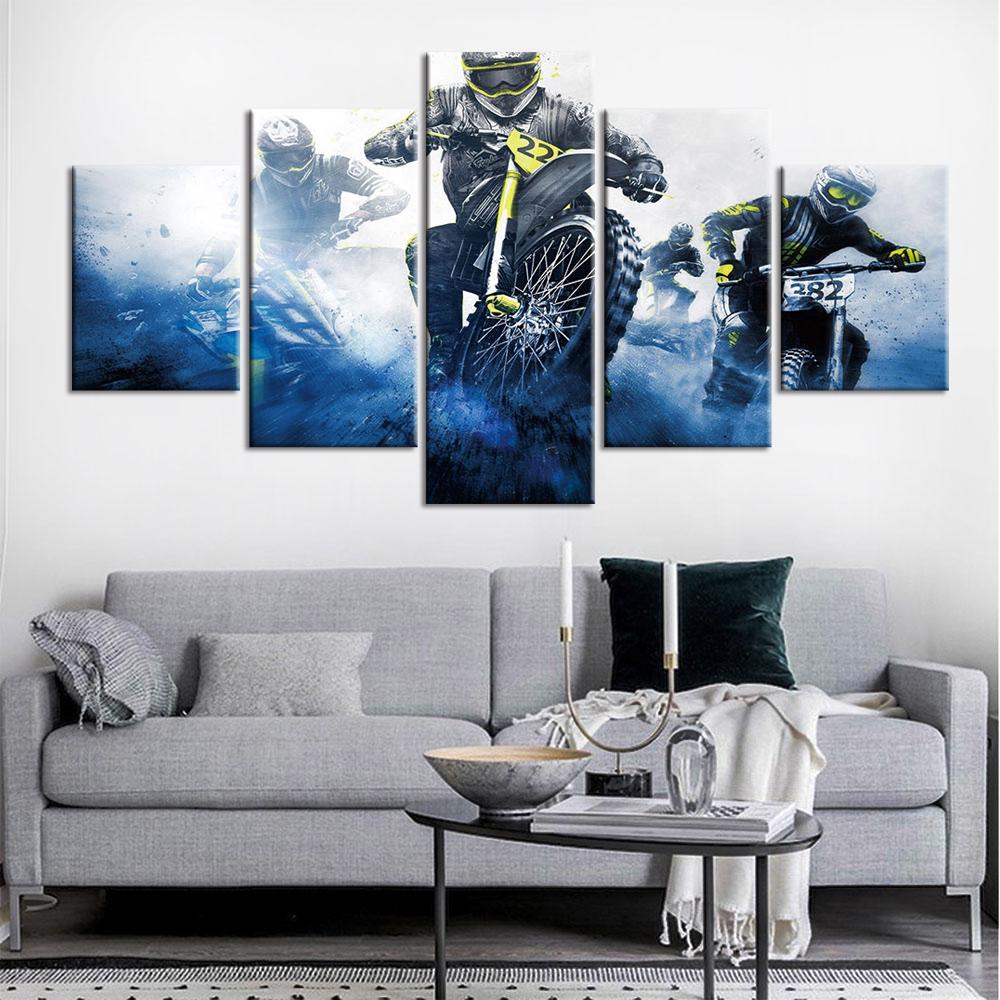 5 панелей фотографии мотоциклов холст живопись домашний декор настенное искусство Motor Rider HD печатает плакат для гостиной