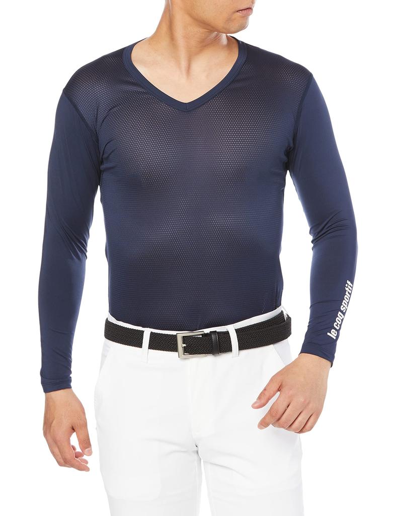 Футболка для гольфа Coq Sportif сетка, впитывающая пот, быстросохнущая, UPF15 ECO QGMTJM01 NV00 M [Le Golf] с V-образным вырезом для мужчин (военно-морской флот)