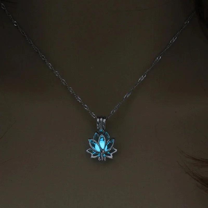 Винтажная мода светящийся в темноте лунный цветок лотоса кулон ожерелье йога молитва буддизм ювелирные изделия аксессуары