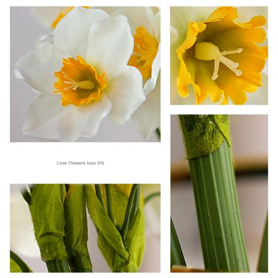 Реалистичная красота: Наши искусственные цветы отличаются яркими цветами и реалистичным дизайном нарцисса, добавляя частицу природы в любое пространство без необходимости полива или ухода.